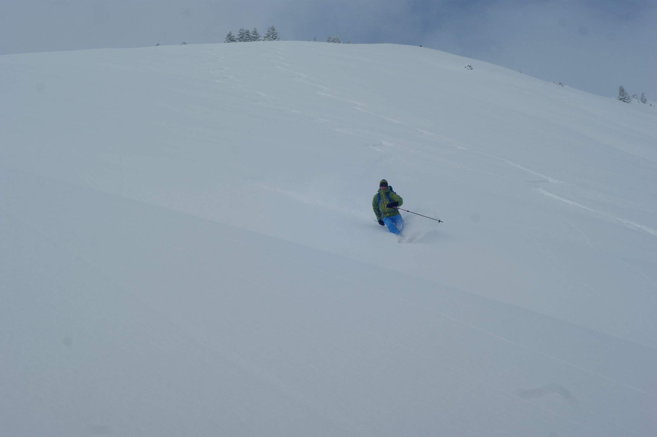 Ganze Route ist bestens eingeschneit. Durchgehend zwischen 30 und 50cm Pulver (leicht gesetzt) mit wenig Unterlage.