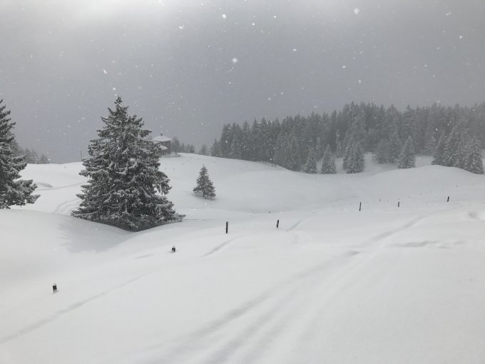 Schnee hat es von der Strasse unten bis oben genug. Da aber der Wildspitz ein recht begehrter Gipfel ist, ist schon recht viel zerfahren. Also selber irgendwo eine Spur ziehen, wenn dann nur im oberen Bereich bis ca. 300Hm unter dem Gipfel. Dort oben feinster Pulver, sicher 40-50cm.