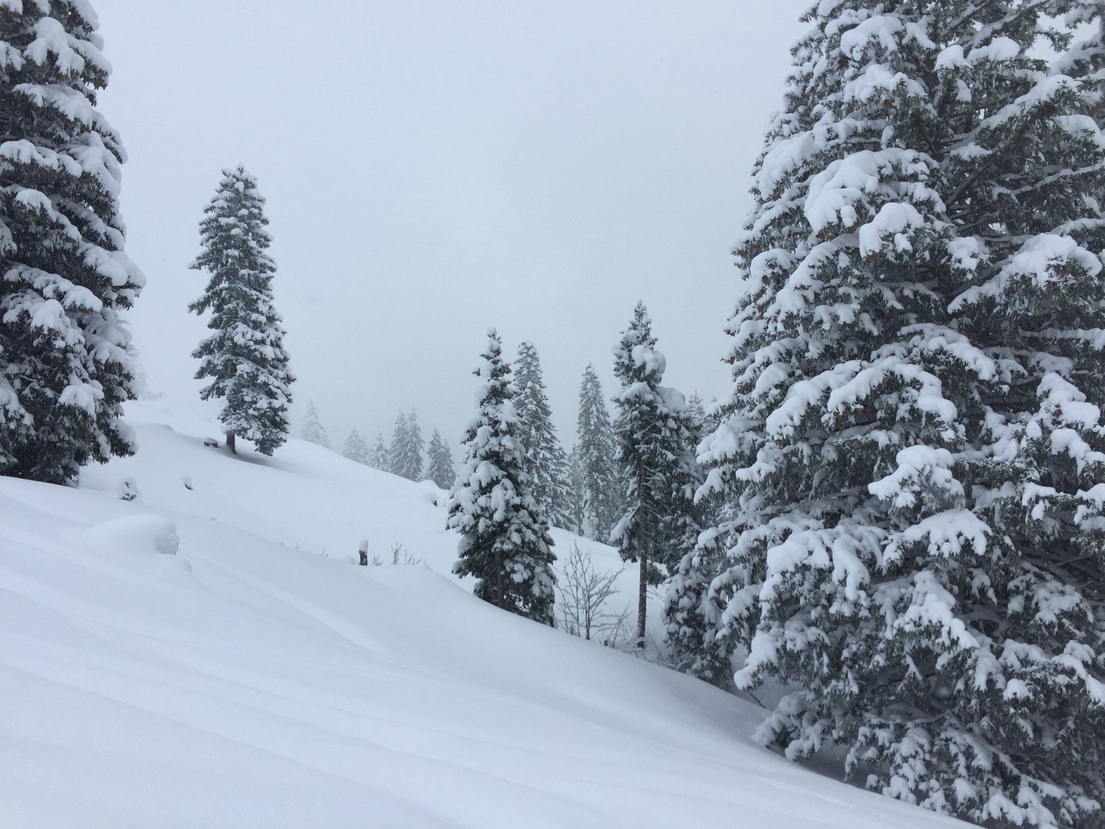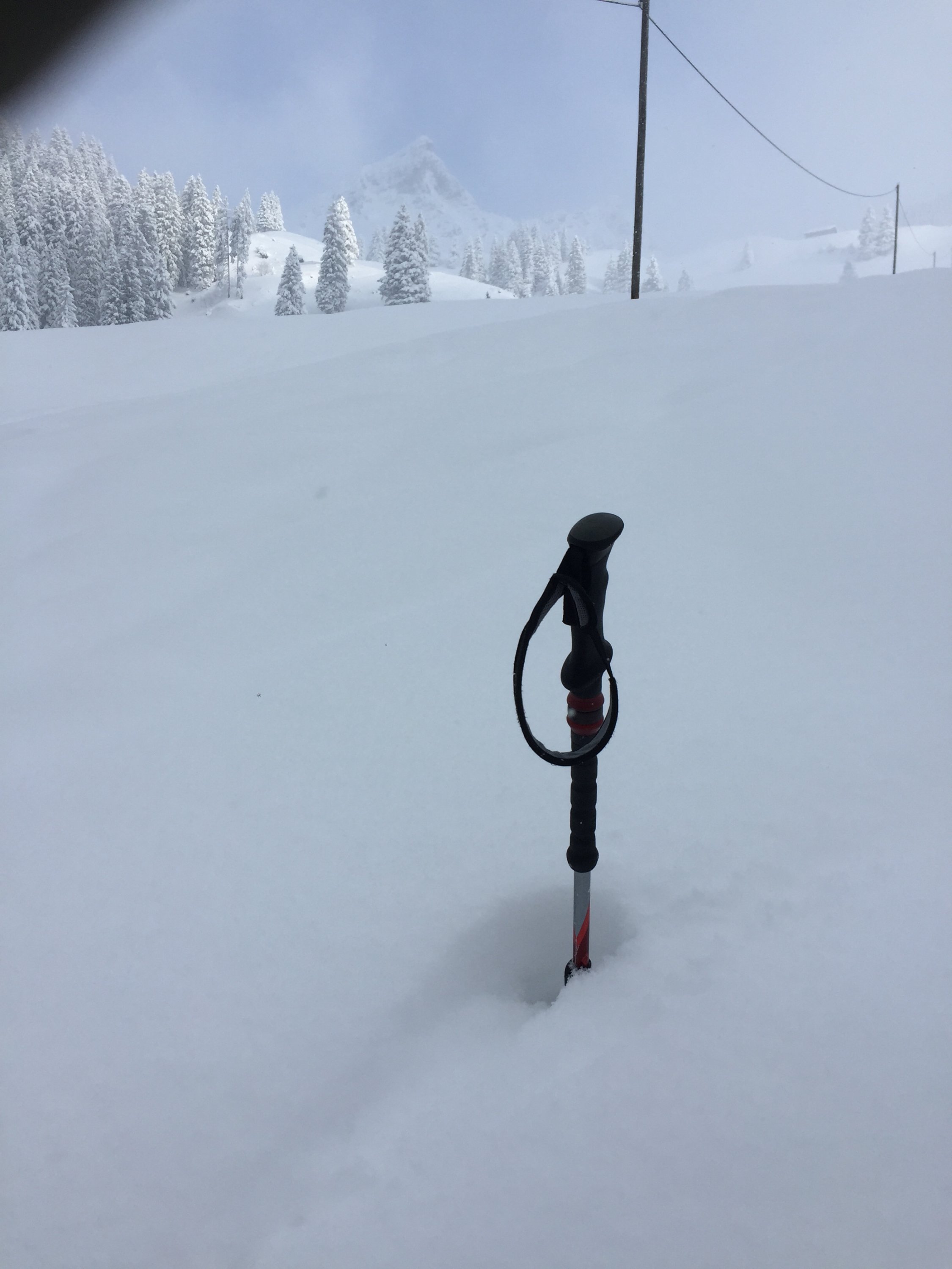 Wer morgen Zeit hat und einen Ski >100 soll unbedingt da hoch, die anderen mit dünnen Latten sollen lieber einen steileren Hang suchen...es hat soviel Powder, dass nur die breiten Skier bei der Hangneigung richtig funktionieren...kam mir vor wie in Kanada mit Faceshots..Absolut Top!