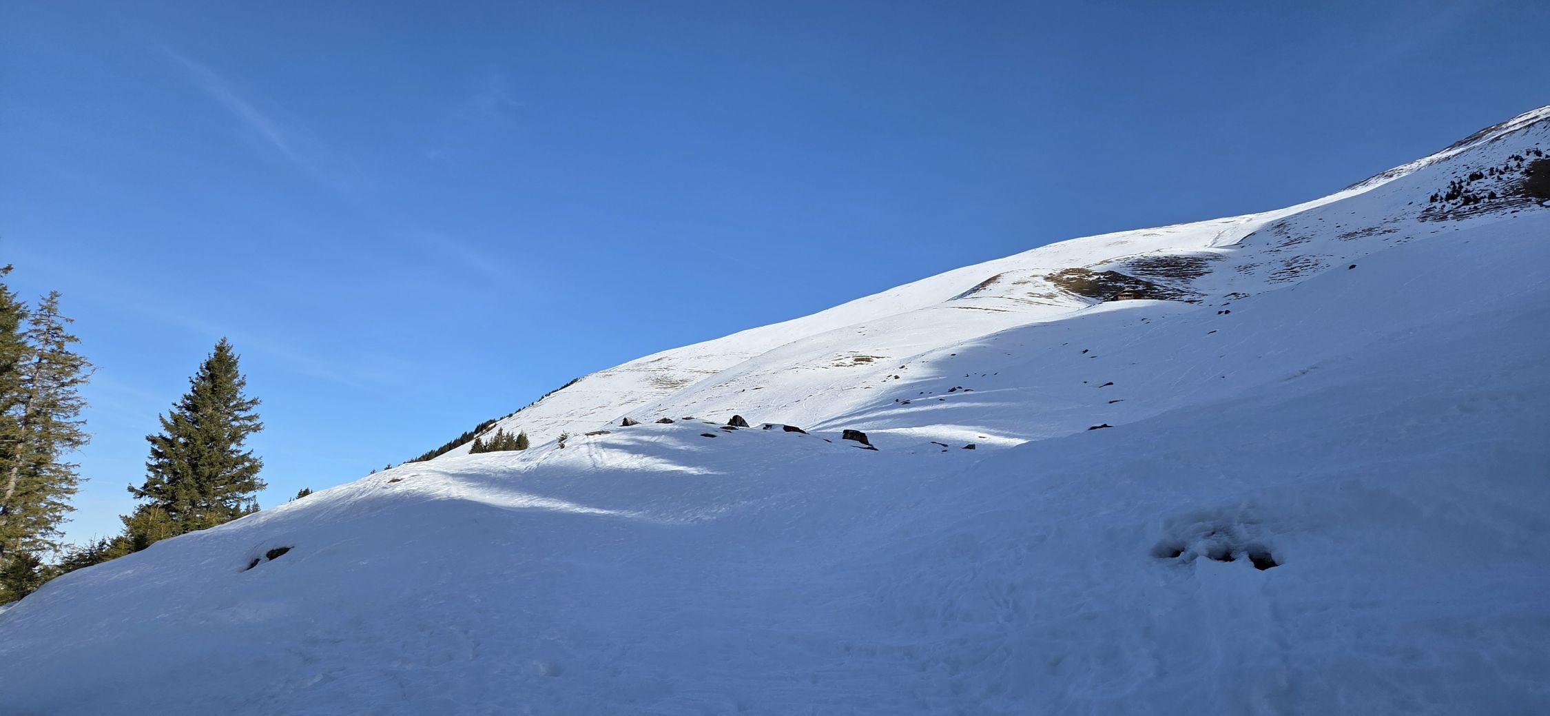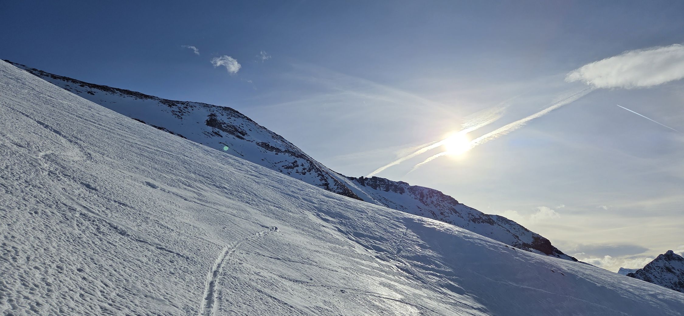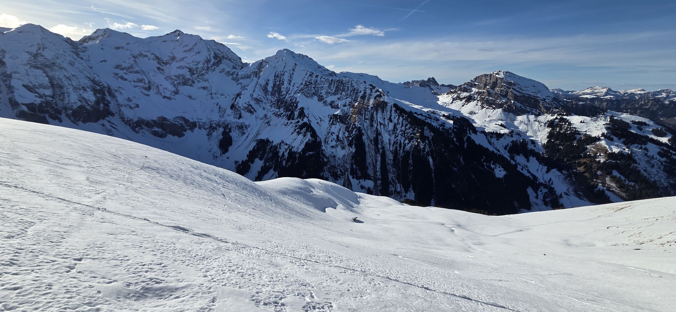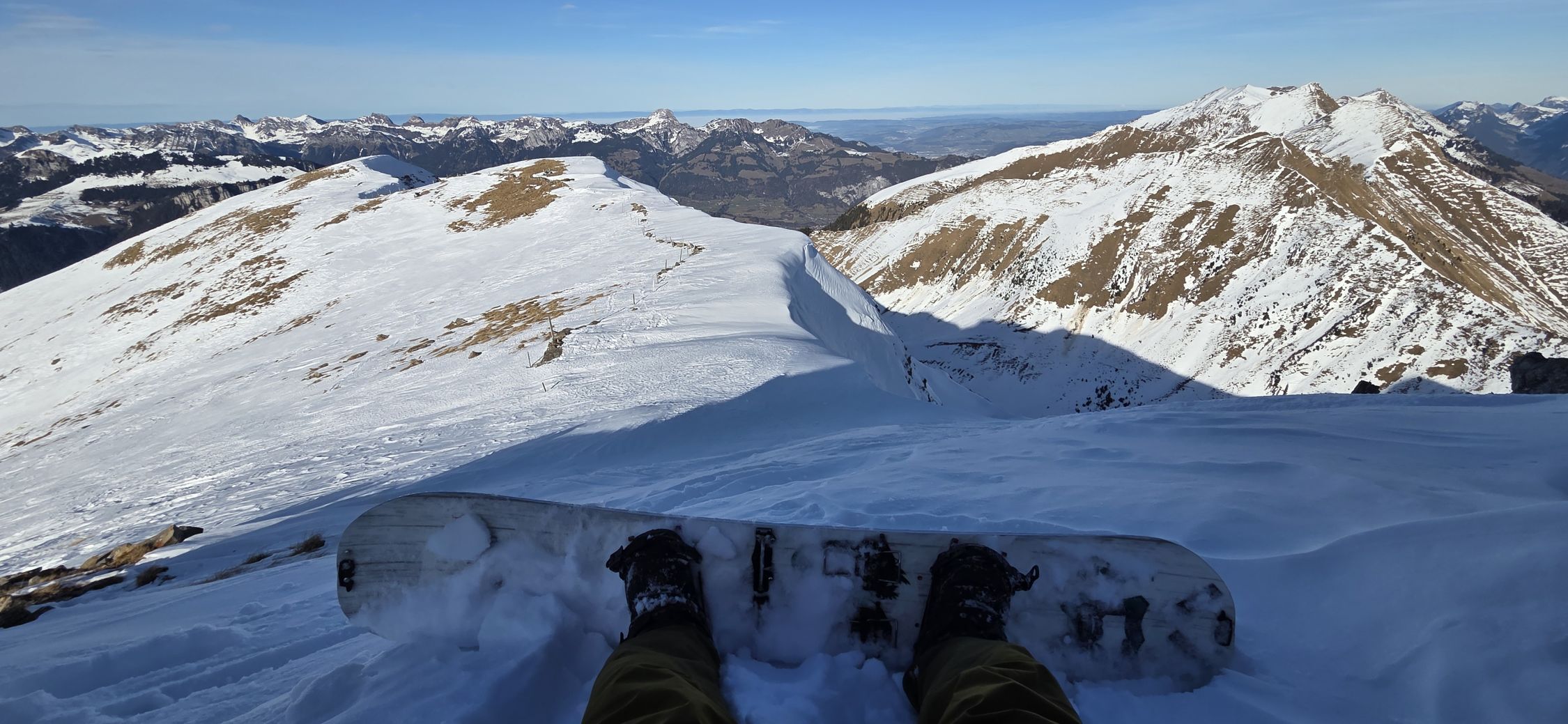 Abfahrt über die leicht aufgesulzte Westflanke hammermässig. Unten raus auch noch easy cruising bis Feissenboden.