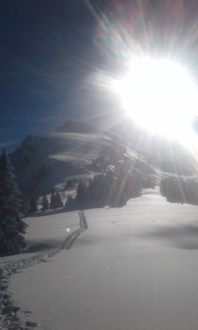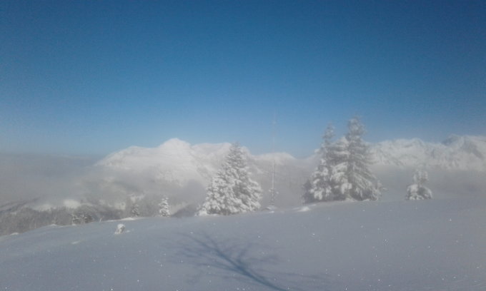 Gipfelhang etwas verblasen. Schnee teilweise gut, teilweise windgepresst..darunter fantastische Verhältnisse....super lockerer Pulver