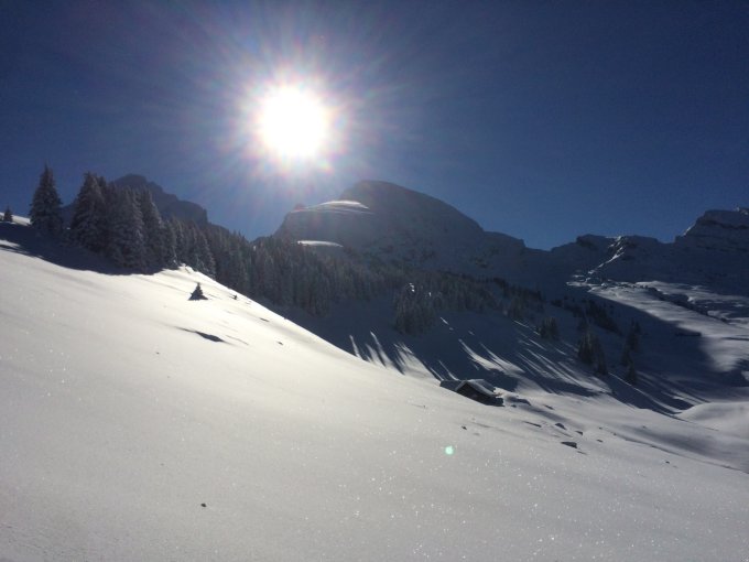 Start um 10.00 Uhr bei frostigen -18 Grad in Starkenbach, im Wald dann schnell wärmer. Gute Spur durch den Waldgürtel, am Gipfelhang ziemlich steil angelegt- trotzdem danke! Ab ca. 1600m Sonne, im Gipfelhang jedoch zu dieser Jahreszeit z.T. wieder schattig. Gipfelhang etwas verblasen, z.T. windgepresst mit leichtem Deckel- trotzdem alles gut und spaßig zu fahren, aber Steinkontakt nicht immer vermeidbar. Hier auch z.T. kleine Rissbildungen beim Bremsen. Unterhalb 1800m nur noch feinster Powder. Heute waren ca. 10-15 andere Skitourengeher am Gipfel, noch ist Platz für unberührte Linien in den Hängen. Achtung im Mittelteil des Waldgürtels- hier muss für eine Zeit dem Wanderweg gefolgt werden, welcher gar nicht einfach zu fahren ist (ca. 2-3m breit, teils zerpflügt und z.T. talseitig steil abbrechend).