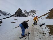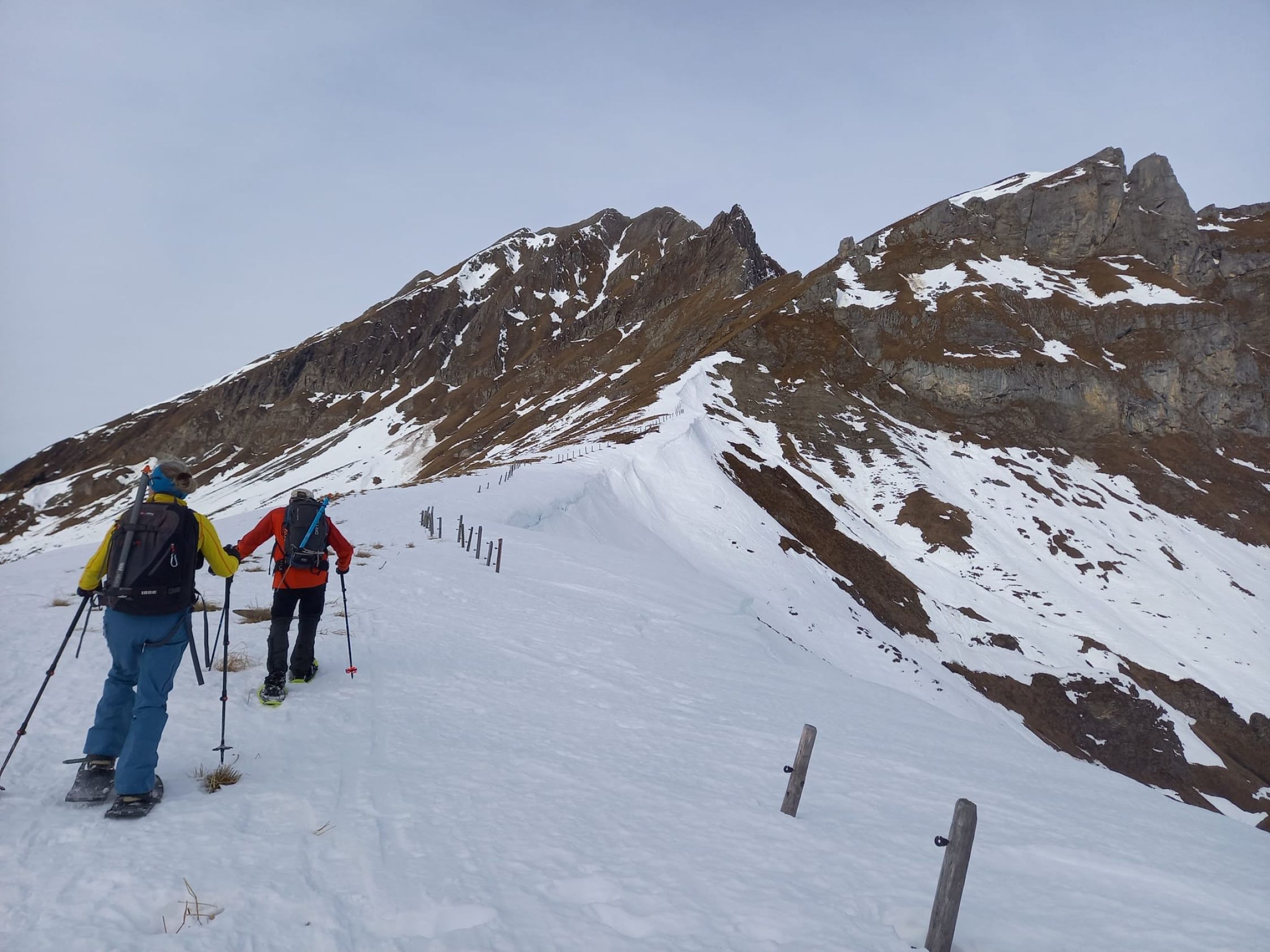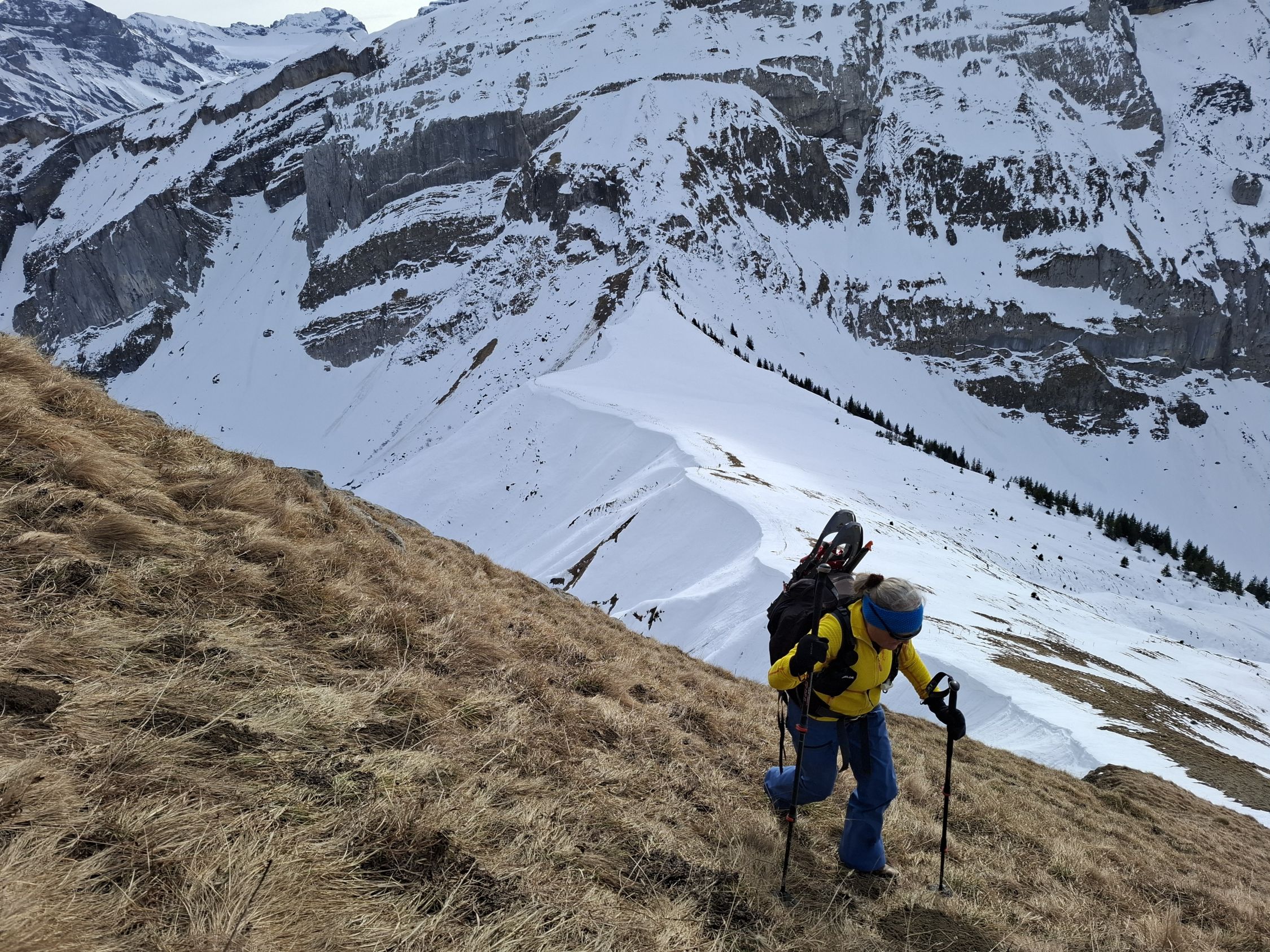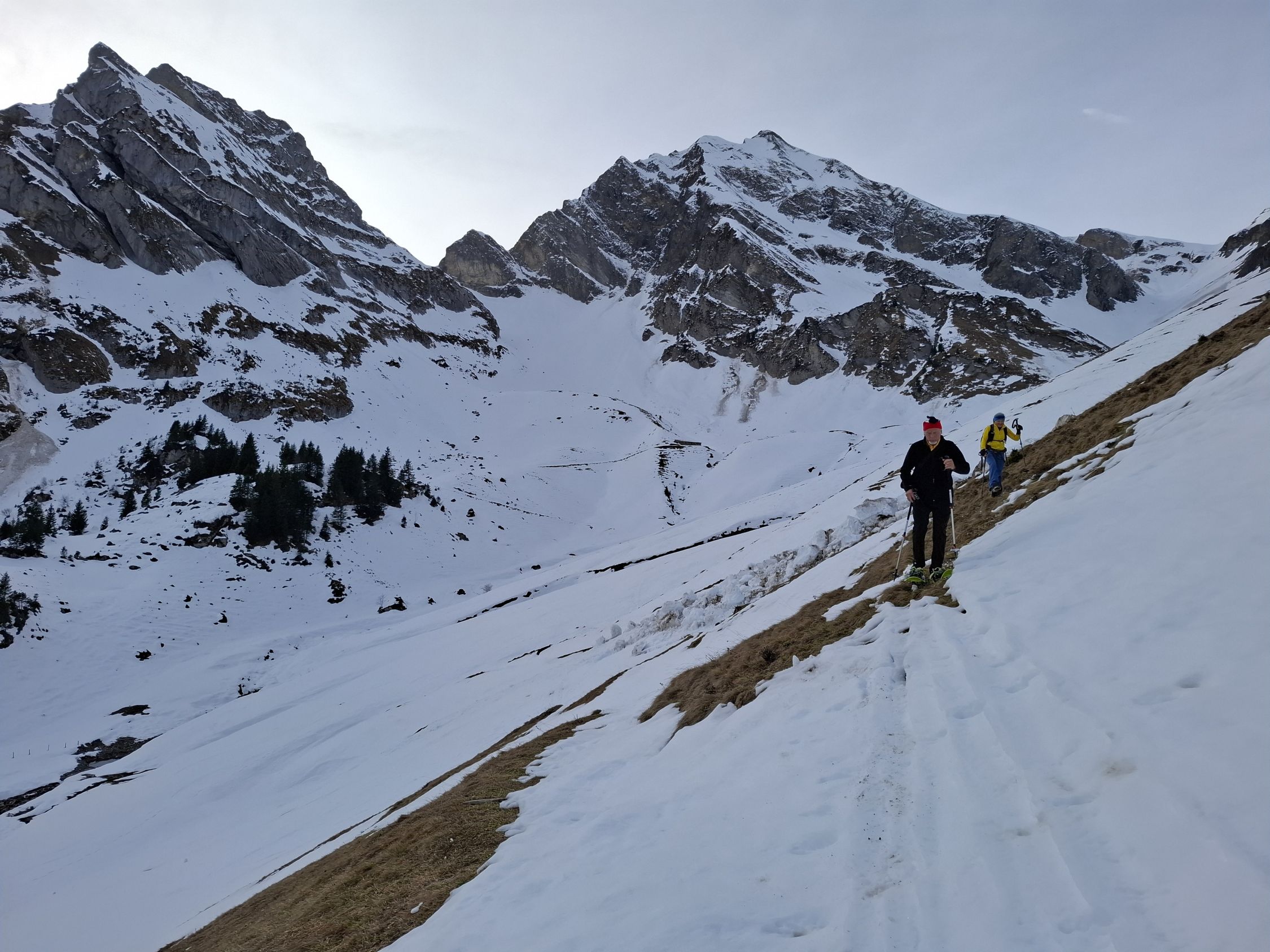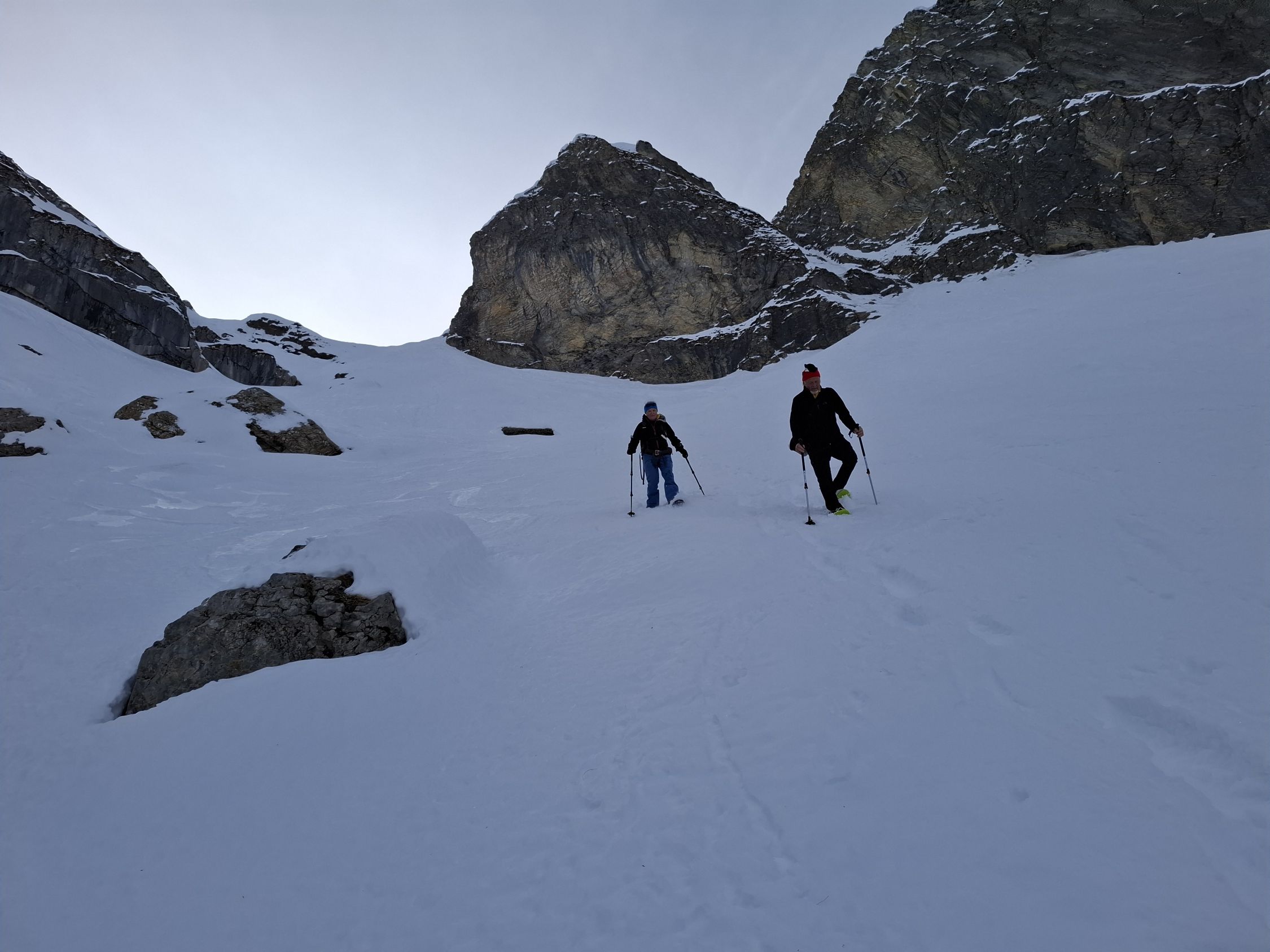 Im Nordabstieg, bis auf eine Höhe von ca. 1700m ausreichend Schnee.