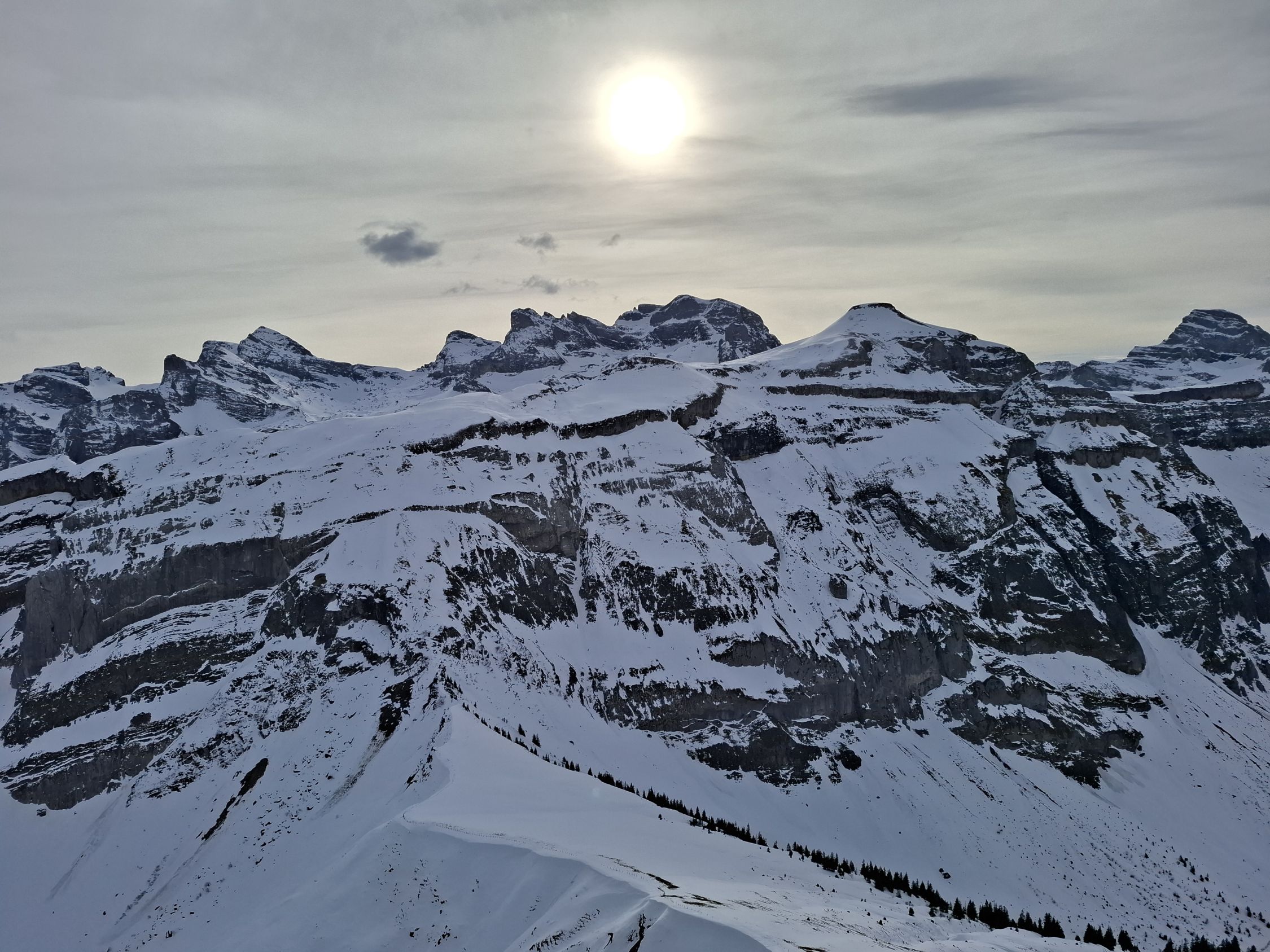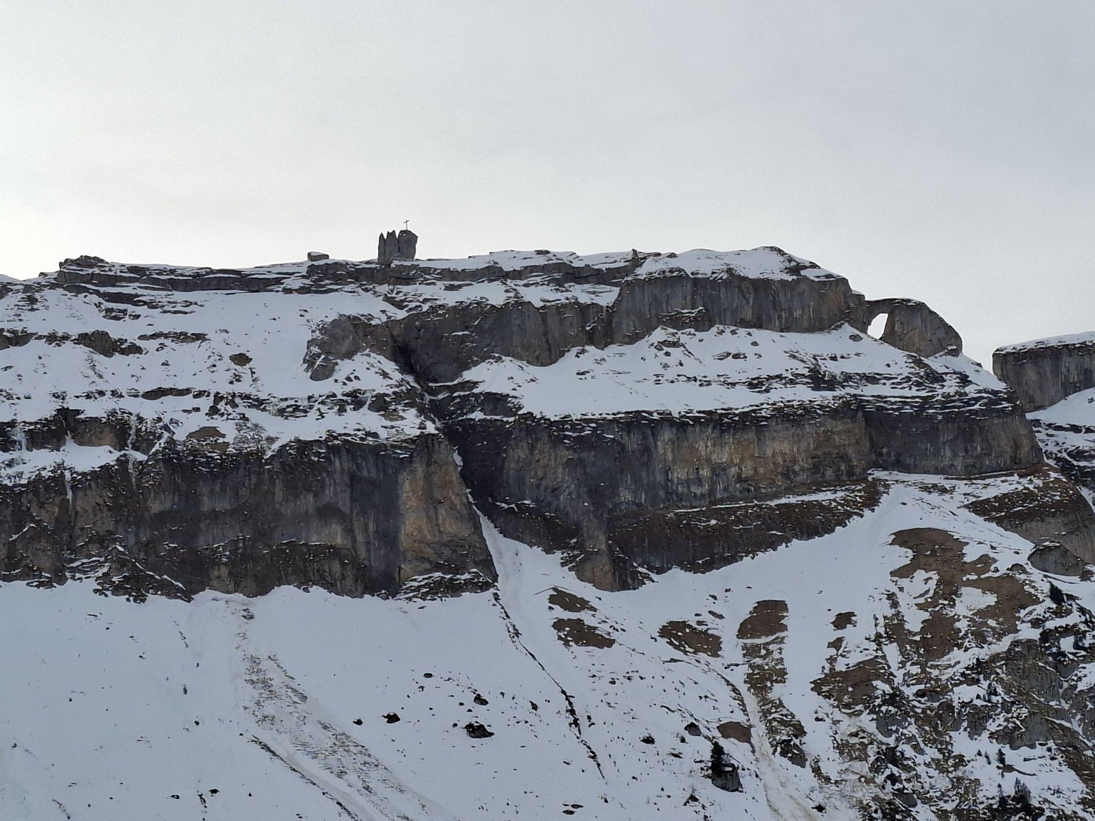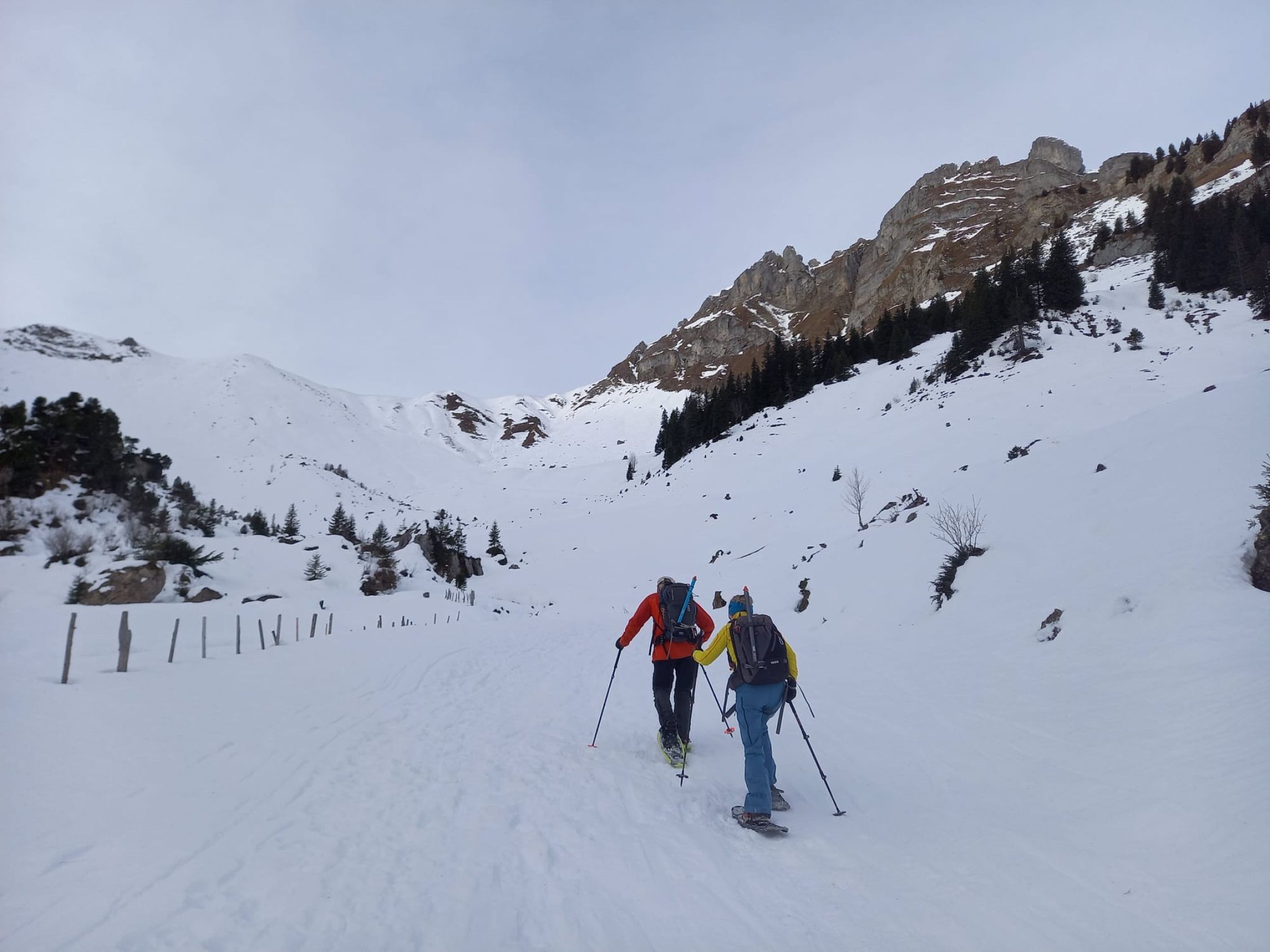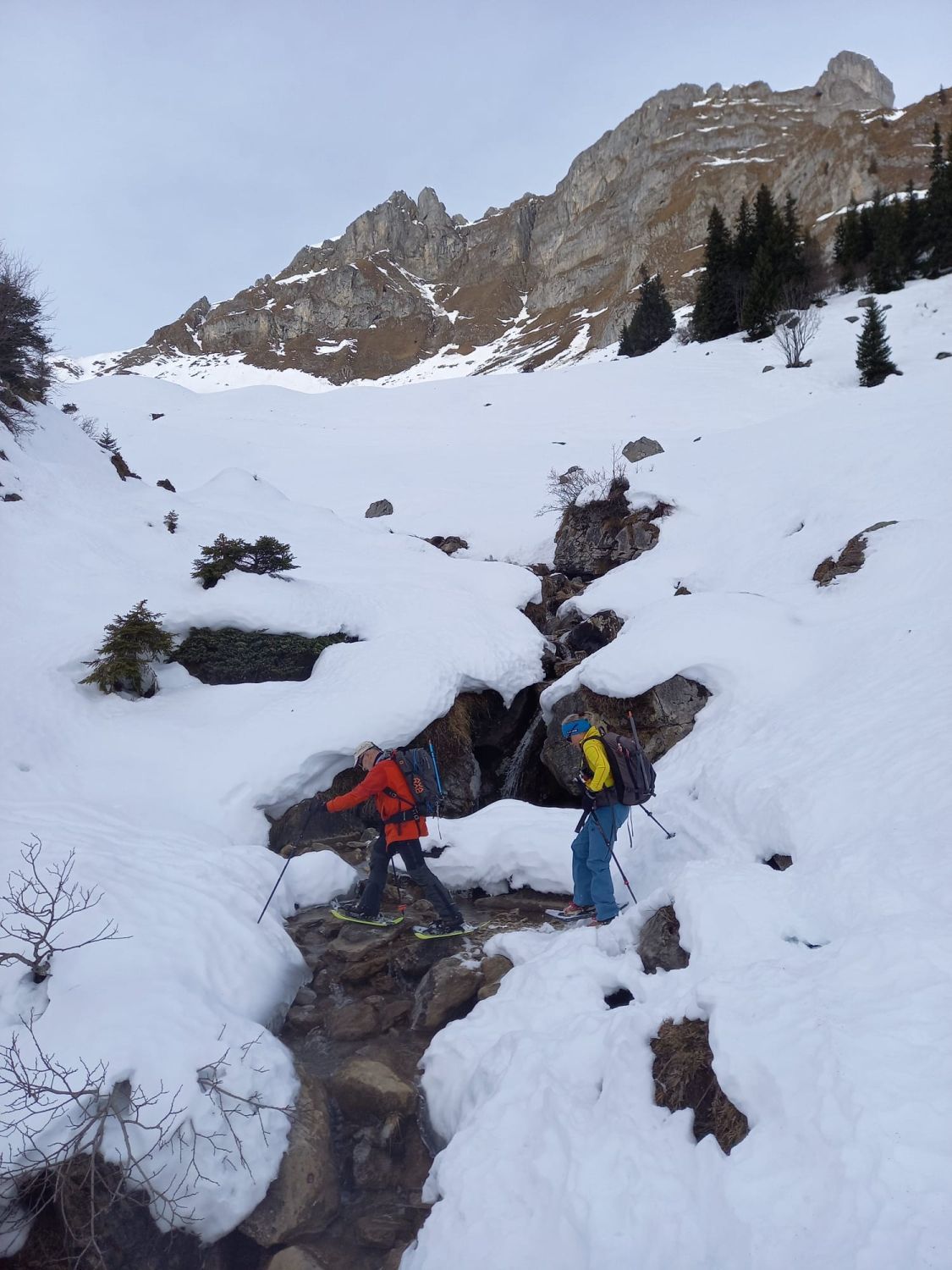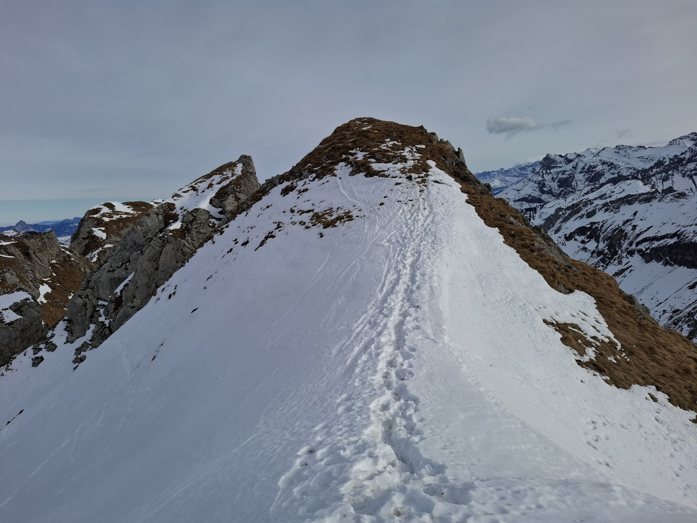 Im Nordabstieg, bis auf eine Höhe von ca. 1700m ausreichend Schnee.
