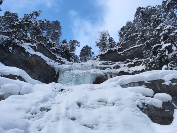 An den sonnenbeschienenen SL gutes Eis, ansonsten recht spröde. In der letzten Länge nur dünne Eisschicht.