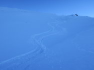 Gipfelhang schon leicht windgepresst, aber noch gut fahrbar.