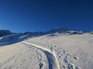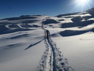 Grate abgeblasen - Rinnen und Mulden mit Triebschnee gefüllt.