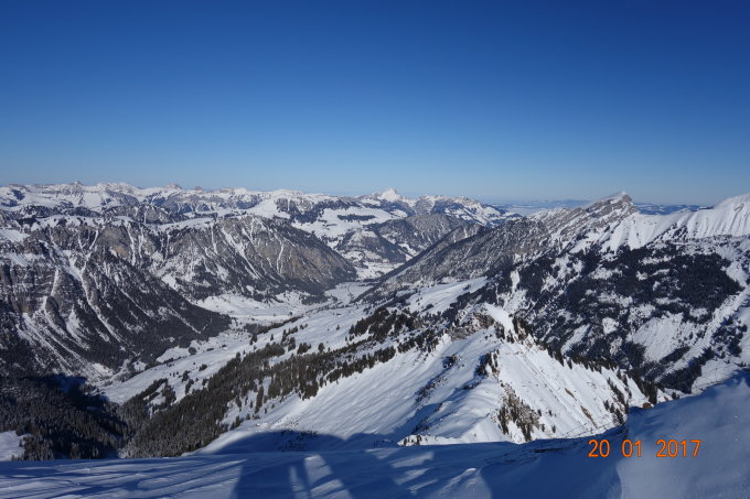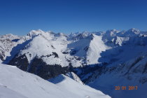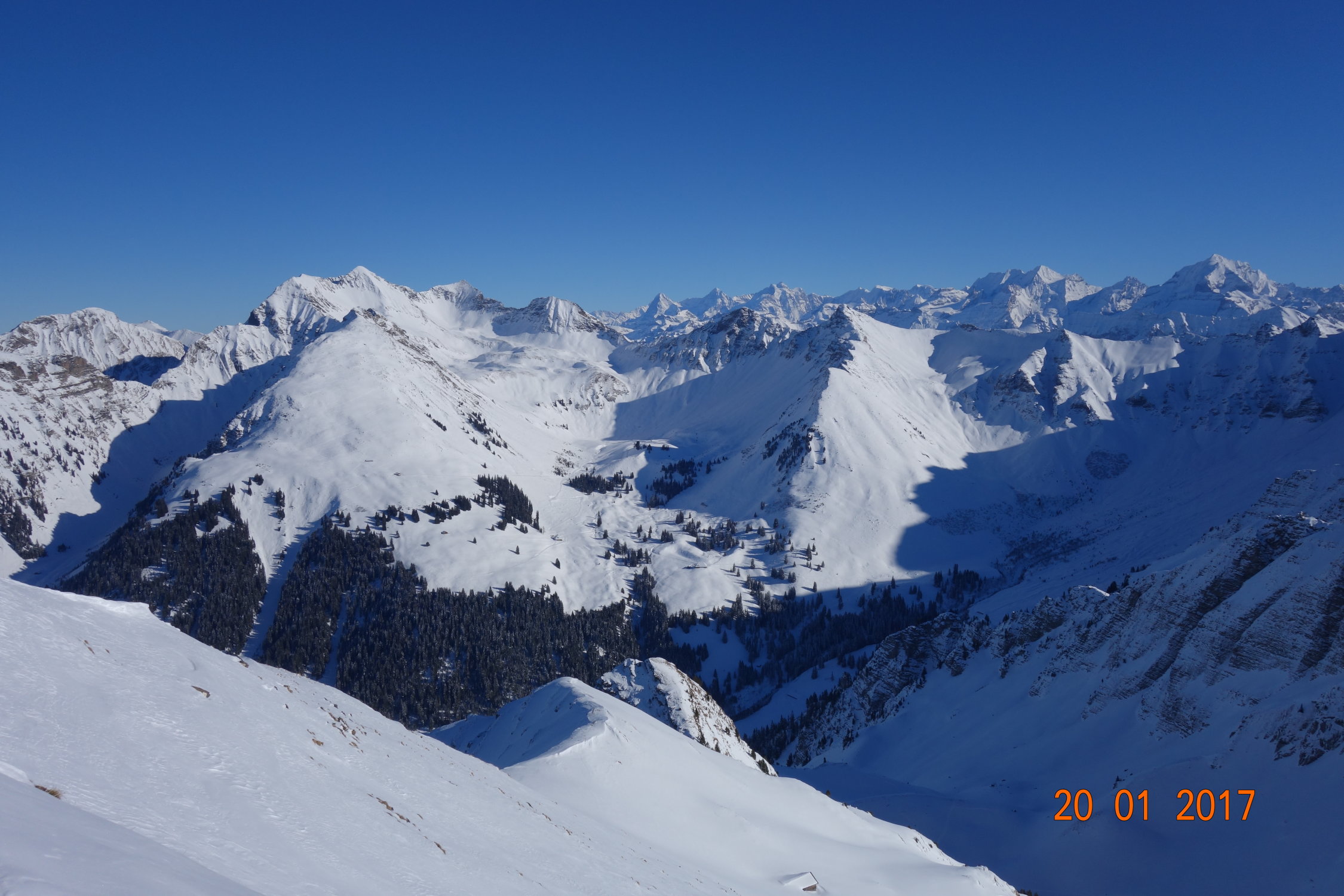 Ab Grimmialp bis Grimmifurggi gut eingeschneit. Auch die Waldstrasse ist mit einer kompakten Schneedecke versehen.Ab Grimmifurggi bis zum Gipfel ist der Rücken ziemlich abgeblasen. Auf der Seite Färmeltal hat es genügend Schnee, wobei dieser teilweise auch von Wind und Sonne bearbeitet wurde. Die Abfahrt vom Grimmifurggi bis zur Grimmialp weist durchgehend Pulver auf. Sehr schön zum Fahren. Es hat immer noch Platz für eigene Spuren.