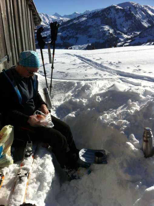Verglichen mit den letzten Tagen sehr warm, Mittagessen im Pullover war sonnseitig wegen der Windstille problemlos möglich.
