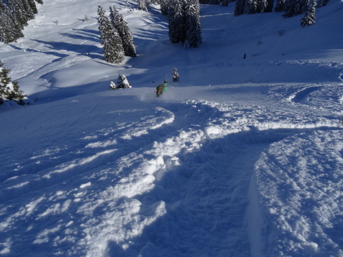durch die Sonneneinstrahlung könnte in de nächsten Tagen schon in manchen Hangpartien ein Deckel entstehen.