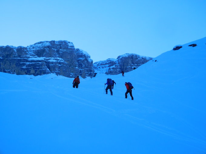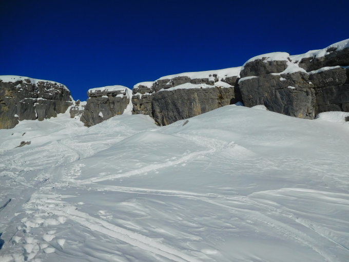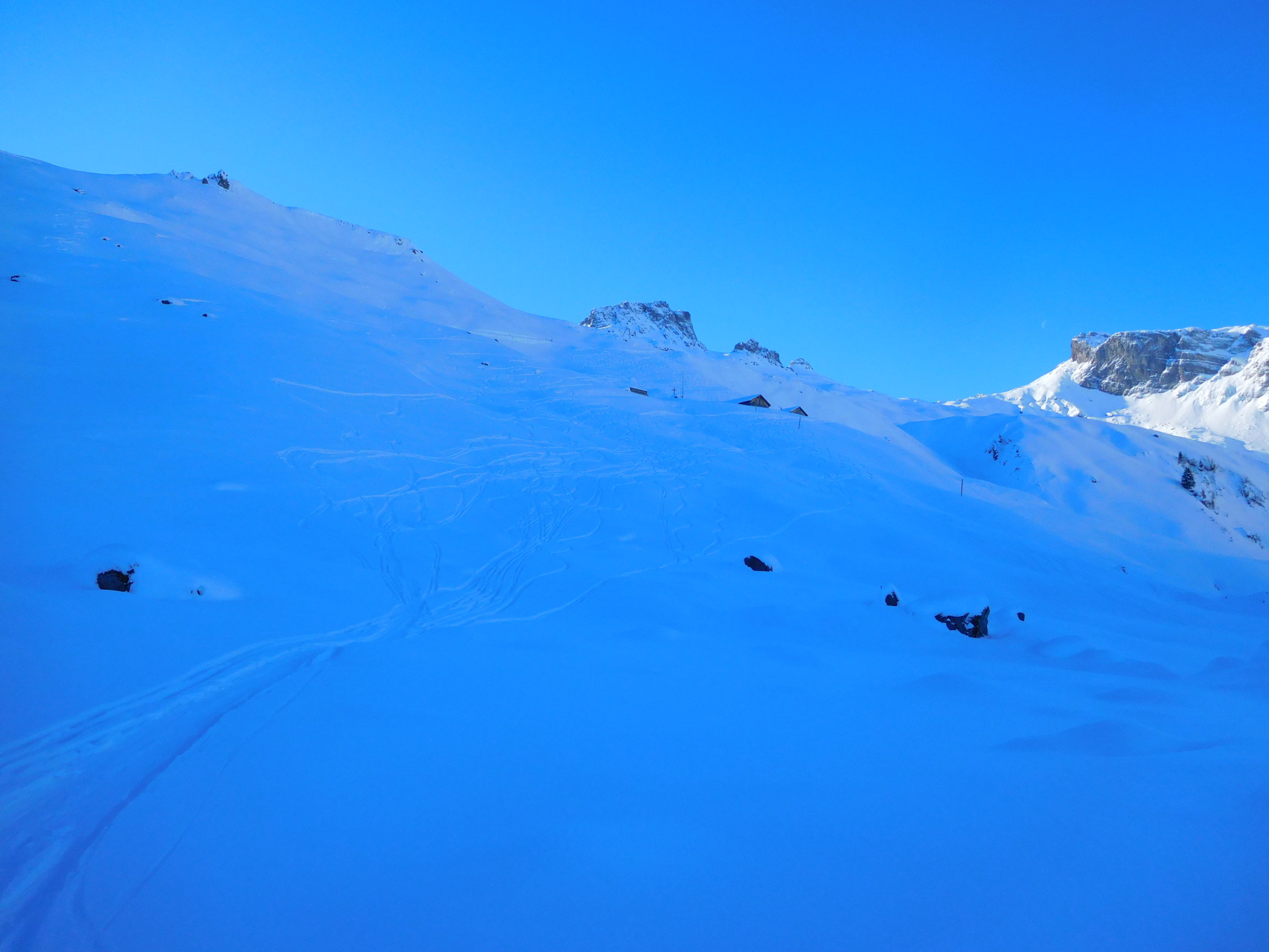 Start der Tour am 8.00 Uhr beim Sahli bei -10 Grad, es führte eine schöne Spur in Richtung Raustöckli, heute sehr gute Verhätnisse im Bisisthal, der ganz grosse Schnee hat es aber immer noch nicht, Abfahrt heute wieder einmal über die Nordseite, immer eine gute Variante, aber schon ziemlich verfahren.