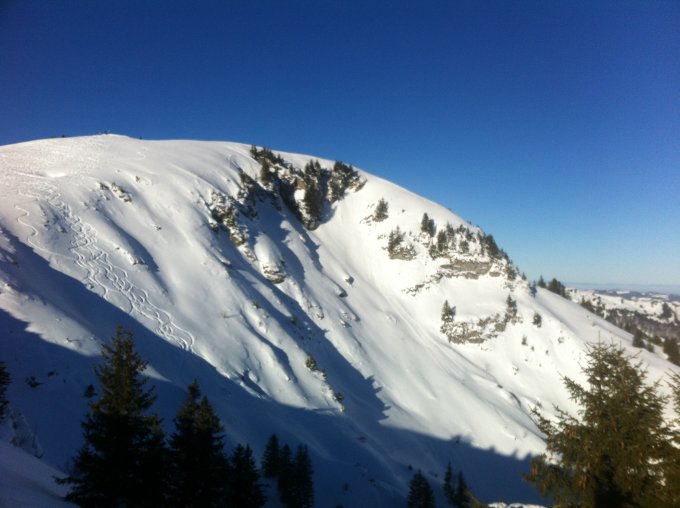 Ab Stein bis zum Gipfel traumhafte Pulverschneeverhältnisse. Schön war auch die Abfahrt nach Schwisole,wo wir die Felle nochmals anschnallten Richtung Vorderi Höhe. Viel Pulverschnee gab es speziell bei der Abfahrt via Häderenberg nach Stein.