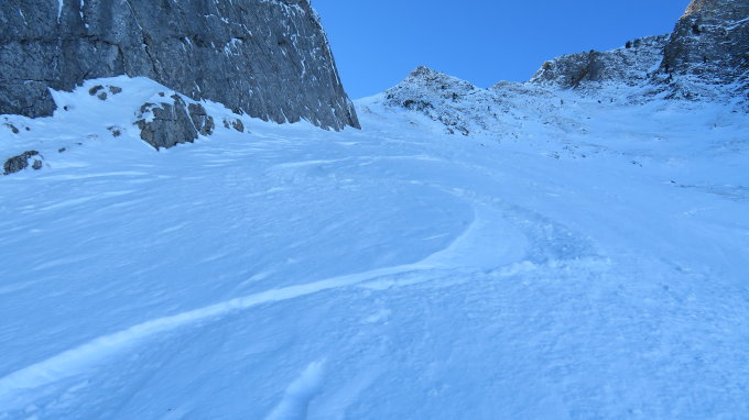 Oberhalb 1300m gute Verhältnisse 20-30cm Pulverschnee auf fester Unterlage aber leider sind einige Steinkontakte nicht zu vermeiden da sie nur knapp Überschneit sind.