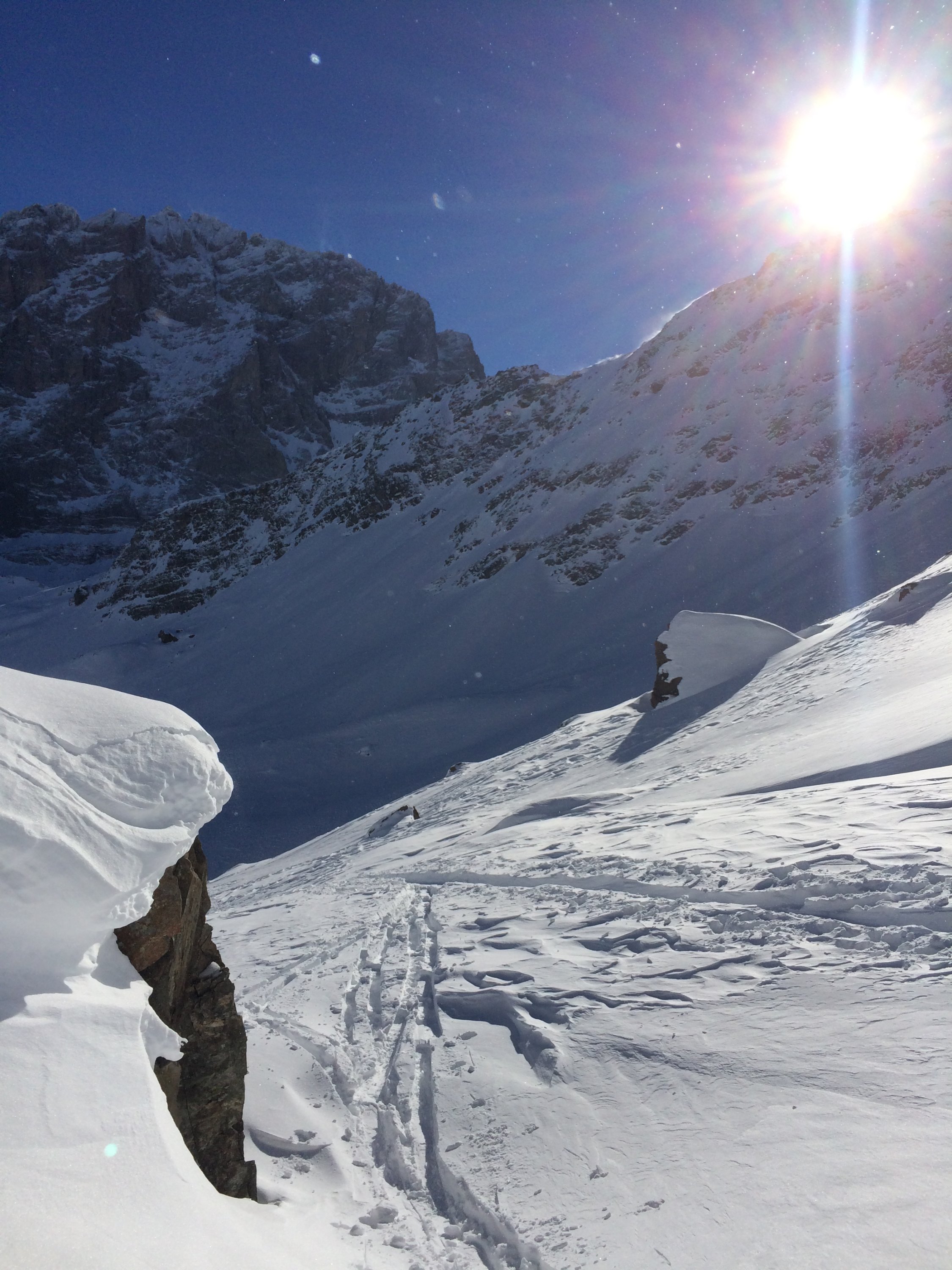 Kurz vor der Brücke nach Unterschächen parkiert. Waren sicher 10-20 Tourer unterwegs. Schnee war super und noch gar nicht gross verfahren.