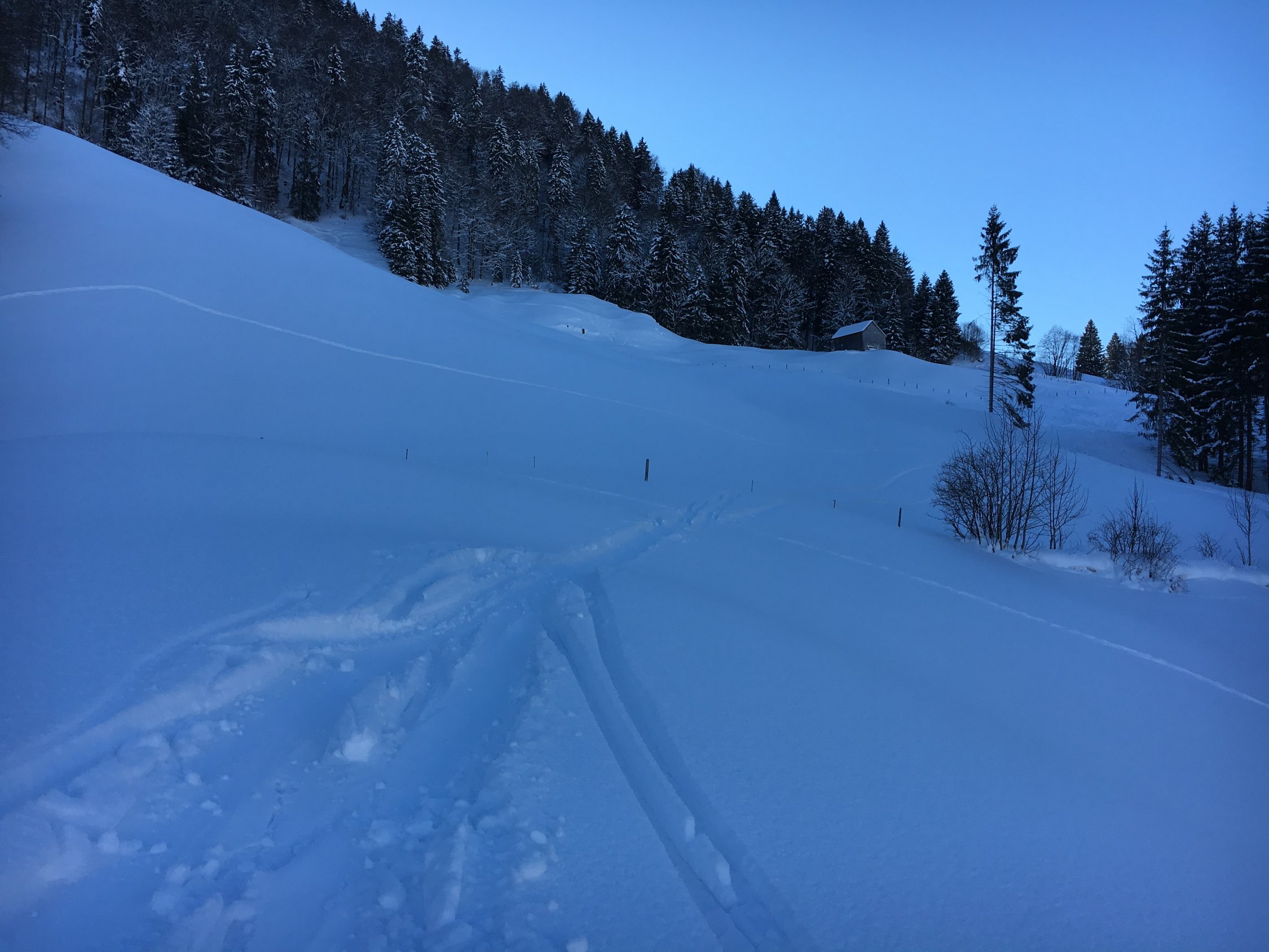 Am Parkplatz in Starkenbach heute morgen um 09.30 knackige -15 Grad, bis zur Bergstation der Seilbahn feinster Pulver, dann immer schlechter. Am Gipfelhang hat der Wind ganze Arbeit geleistet, von abgeblasen bis gepresstem Pulver Teil gedeckelt ist alles zu finden. Abfahrt dadurch sehr ruppig. Unten dann noch ein paar Genussschwünge im feinsten Pulverschnee. Super Wetter heute am Gipfelhang etwas windig.