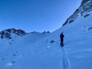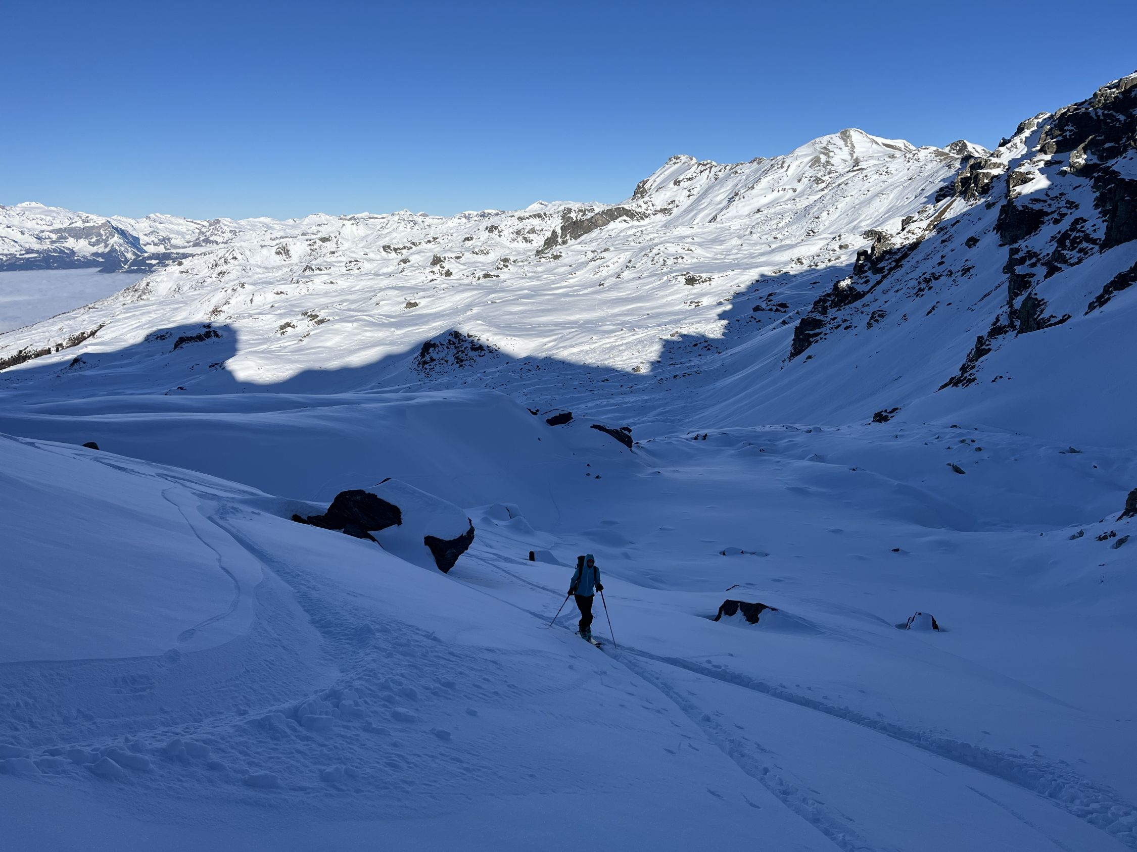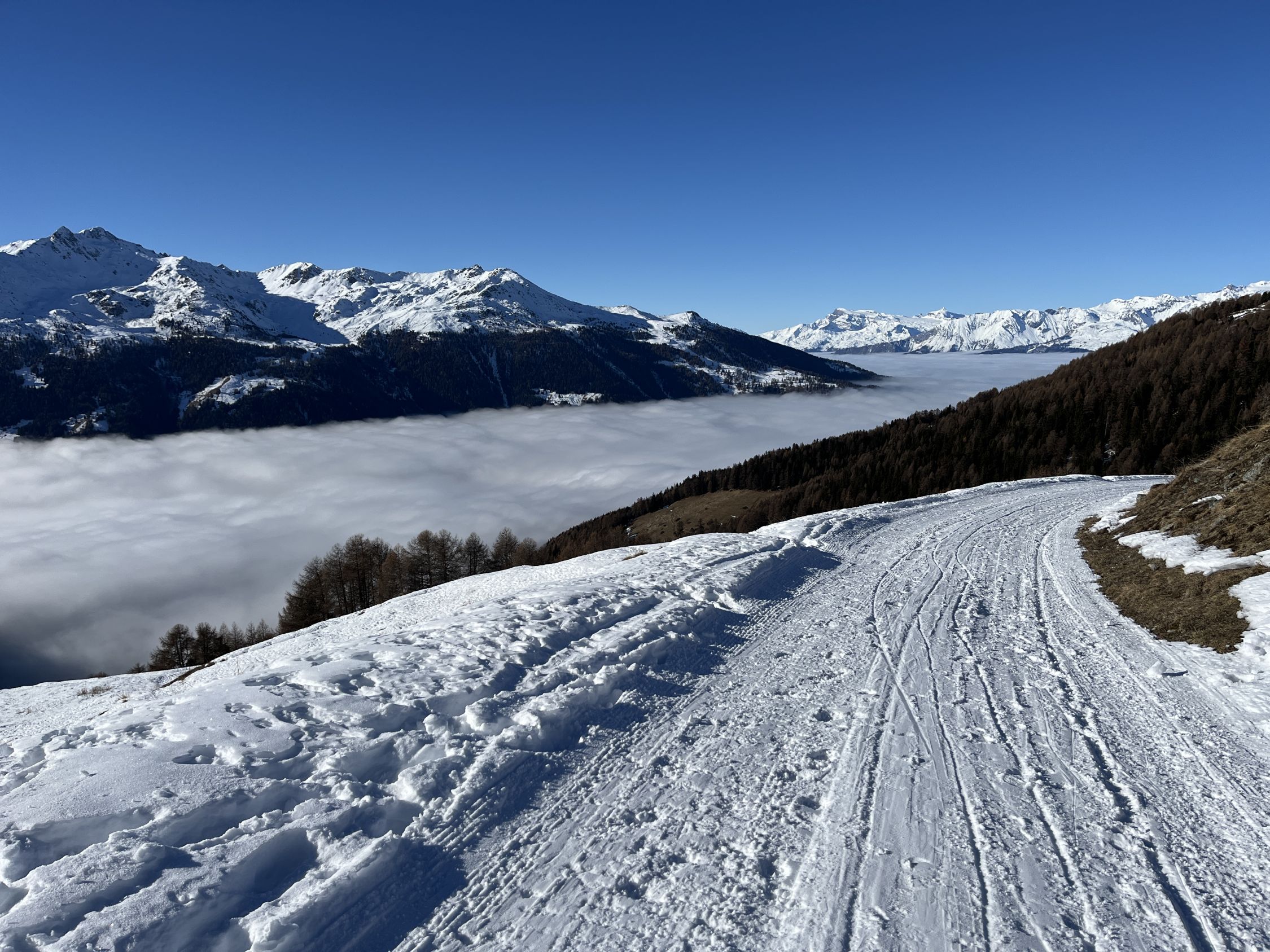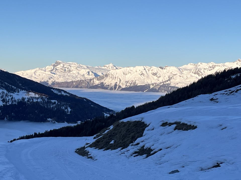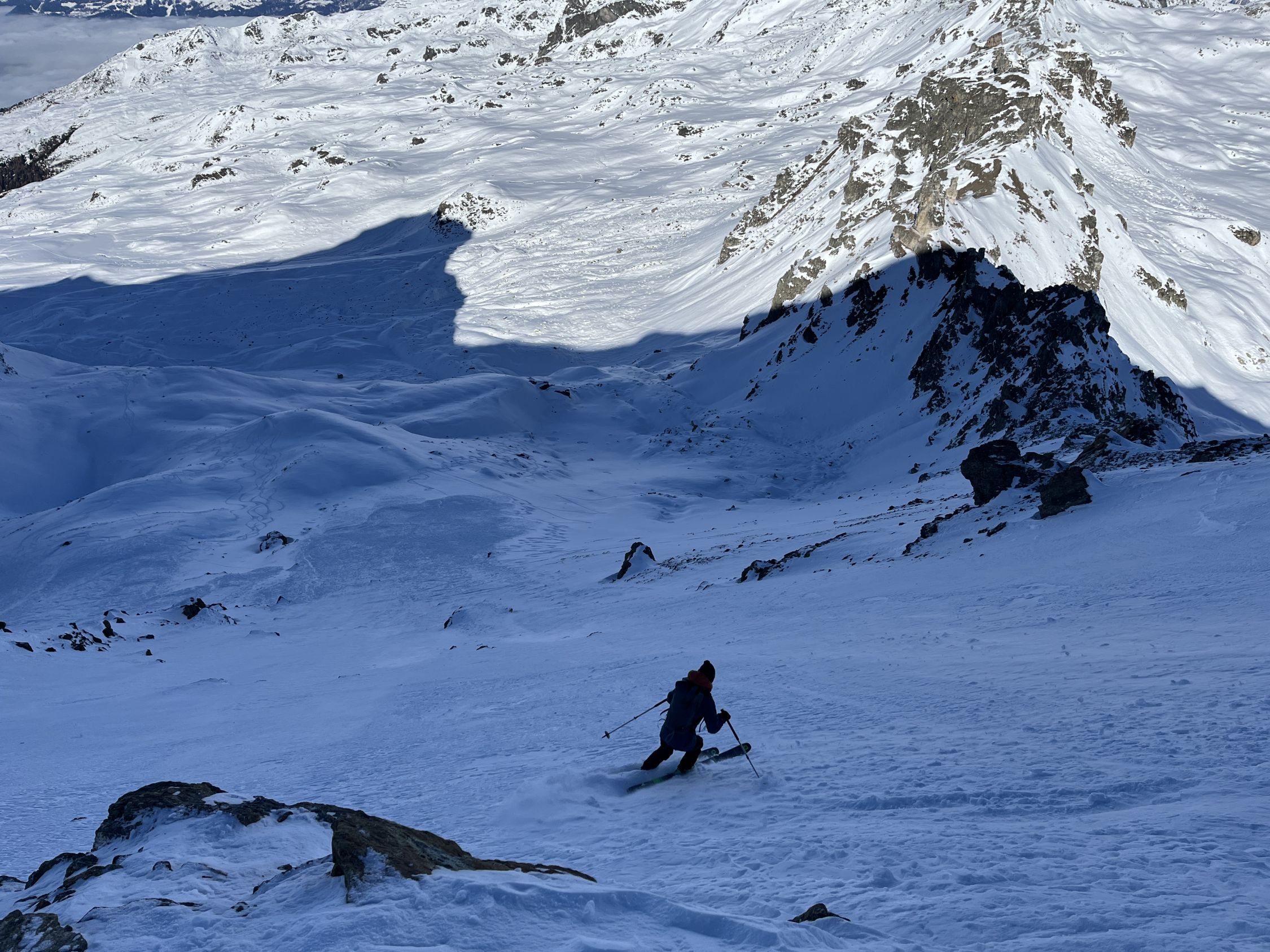 Wir sind nicht von St. Luc aus gestartet , sondern vom Parkplatz Le Foret. Durchgehende Schneedecke auf dem Wanderweg zum Hotel Weisshorn. Sehr gute Pulververhältnisse, allerdings ist zwischendurch umsichtige Fahrweise sinnvoll und Steinkontakt nicht immer ausgeschlossen. Insgesamt wenige Spuren auf der Nordseite. Gipfelhang in teils grundlosem Schnee und Geröll etwas rutschig und mühsam zu begehen. Sehr schöne und lohnende Weihnachtstour.