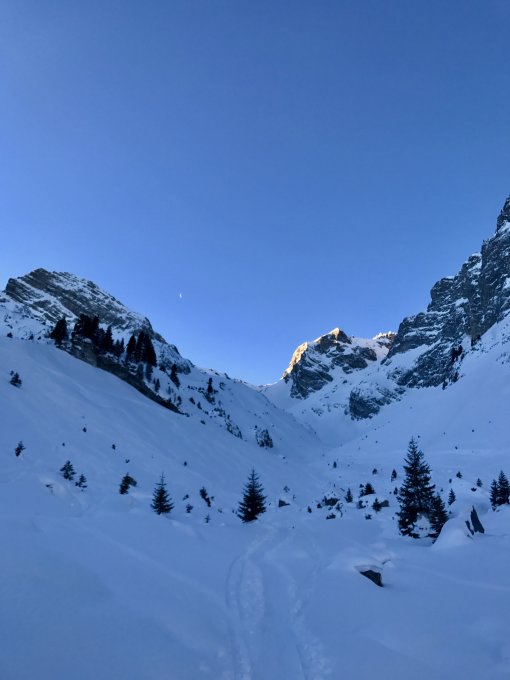 Zum Nachdenken; ich habe heute wiedermal bis Würzi die Waldabkürzung genommen. Ich kann dem nicht viel abgewinnen. Aufgrund der Suboptimalen Spurlegung ist der Zeitgewinn für wenig geübte Tourengeher minim. Im Gegenteil, diese benötigen zu viel Energie für die 2 min Zeiteinsparung.... und zudem ist der Wald das Schlafzimmer der Wildtiere... wir hätten auch nur mässig Freude, wenn täglich eine Horde Elefanten durchs Schlafzimmer stapfen... zum Nachdenken bei der nächsten "Abkürzung "