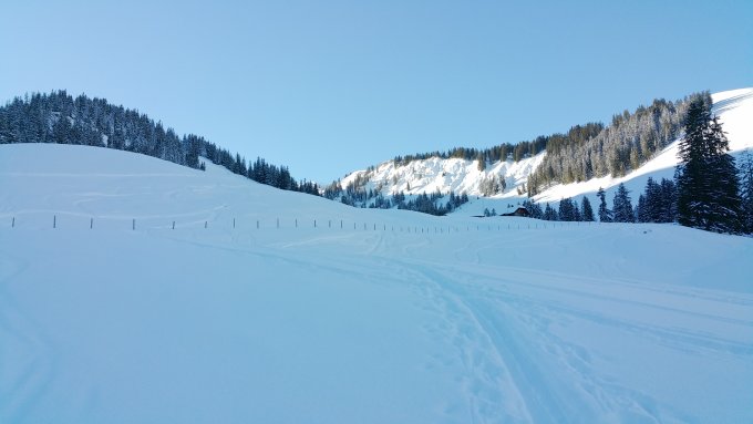 Minus 12 Grad beim Start am Tourengeher Parkplatz. Durchgehend gut gespurt. Ich musste mit dem Splittboard diese nur etwas verbrietern. Bis kurz vor den Gipfel alles im Schatten. Am Gipfel beste Fernsicht und nachezu windstill. Nach der Rast eine traumhafte Abfahrt im Pulver mit vielen unverspurten Abschnitten. Bei "sampftem" Swingen mit dem Board kein Kontakt. Teilweise Powder wie in Kanada.