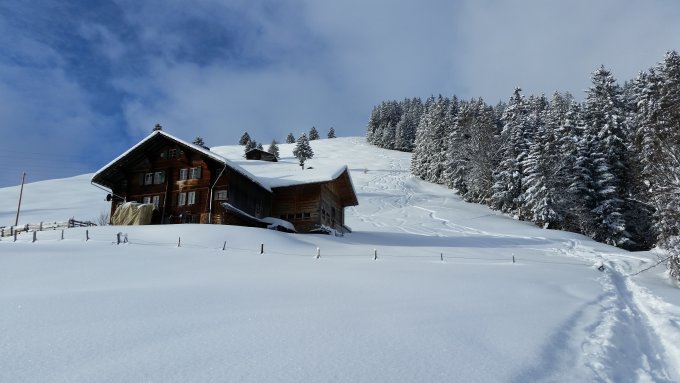 30 cm Pulver von oben bis unten. Hang noch nicht so stark verspurt wie wahrscheinlich am Ende des Tages