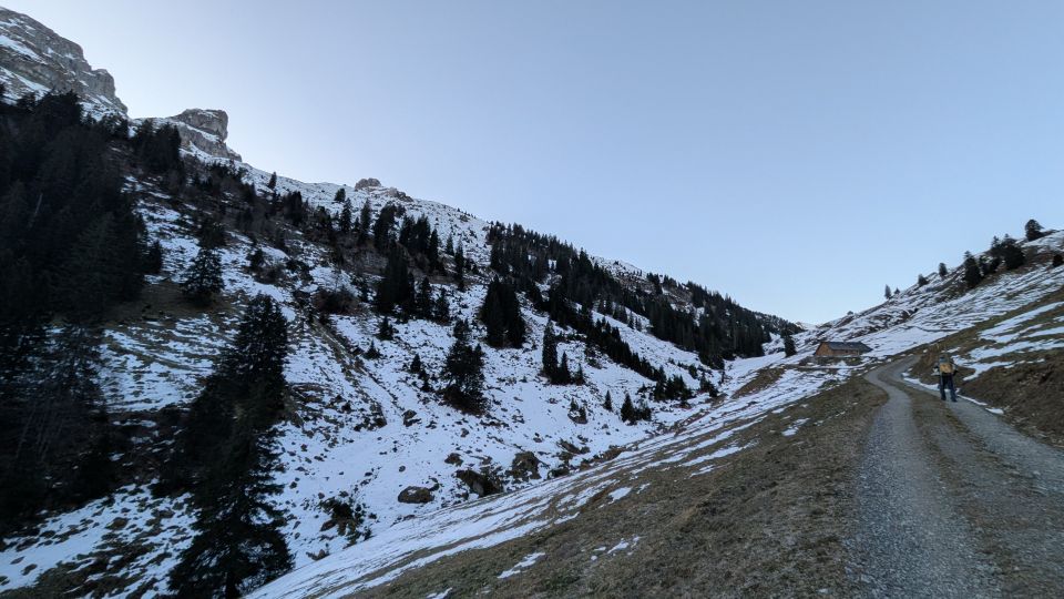 Schnee erst ab Suterlis Hütte 1342m. Durchgehende Schneedecke ab ca. 1600m. Harte tlw. unregelmässige Unterlage. Kein Vergnügen, aber dafür kein Steinkontakt gehabt. Wir waren auf dem Chaiserstock, Chronenstock und Blüemberg. Oberhalb 1800m hat es genügend Schnee für eine Skitour. Die Touren sind allerdings momentan besser geeignet von der Lidernenhütte.