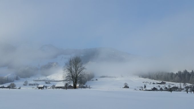 Im Aufstieg von Blumenstein aus auf guter Unterlage unterwegs. Der Pulver der letzten Woche hat sich schon etwas verfestigt, die obere Auflage ist aber in den Schattenregionen immer noch pulvrig. Ein solide Spur führt auf Punkt 1853 und auch auf die Gustispitz.