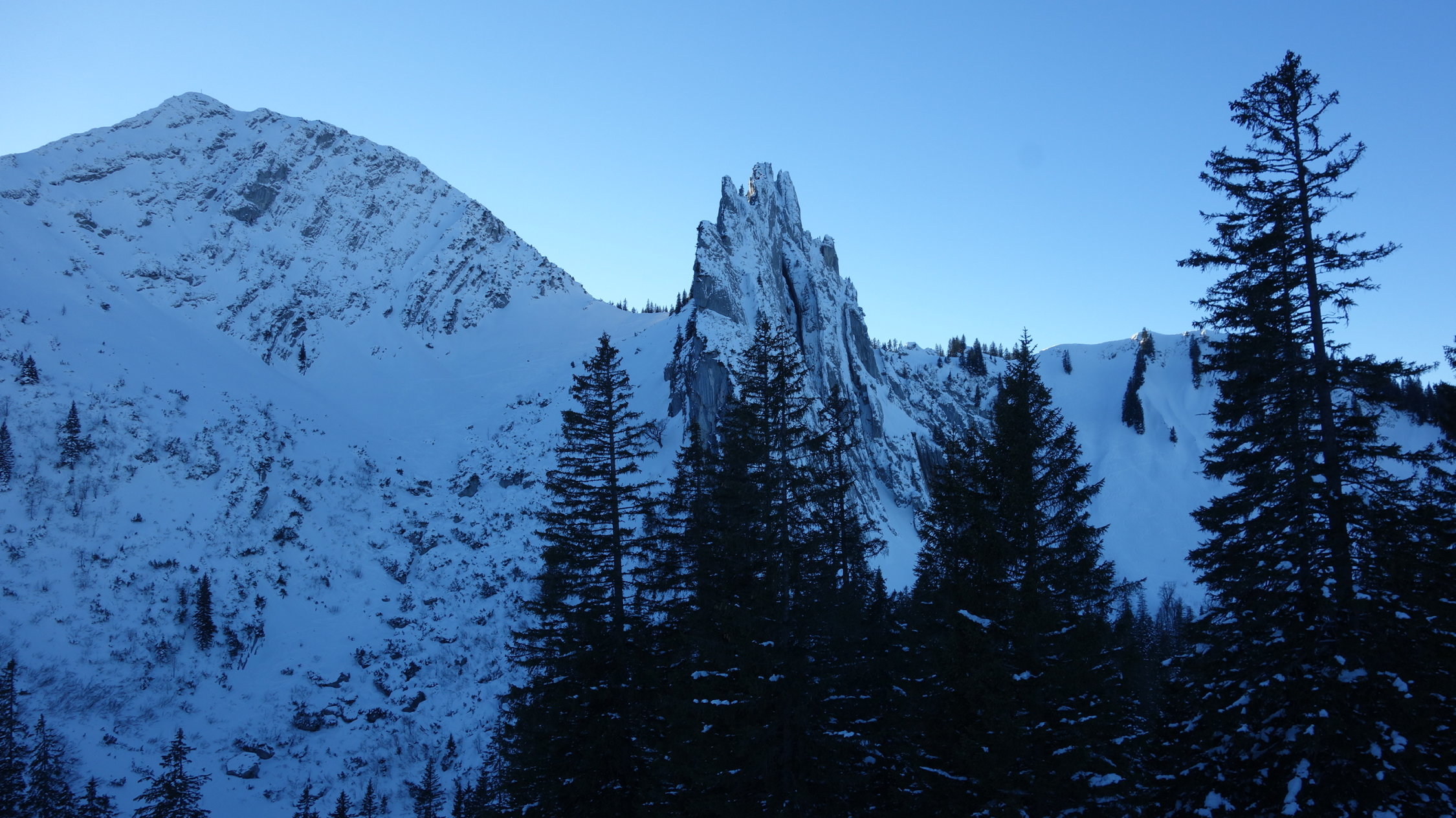 Pulver, genug Schnee. Engstelle im Kar unter dem Plankensteinsattel unangenehm sowohl im Aufstieg als auch in der Abfahrt. Ansonsten aber einwandfrei. Gipfelanstieg eingespurt, erster Gipfelbesuch seit 3.1.