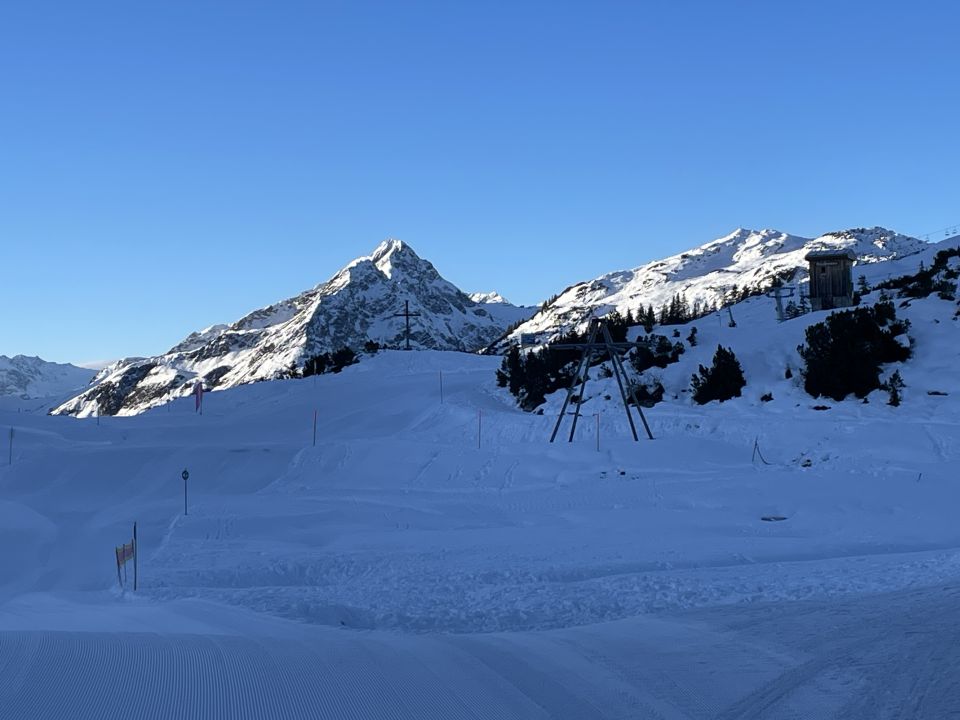 Wegen dem Schneemangel führ der Sessellift zum Riedkopf nicht. Der Schneeschuhtrail war deswegen auch nur bis zum Bergrestaurant Riedkopf gewalzt, allerdings über die blaue Piste 7 und nicht die ursprüngliche westliche Route.