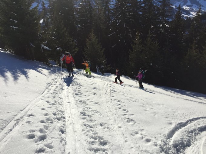 Unterwegs mit der Familie. Flurin's erste Skitour mit Acht. Bravo.