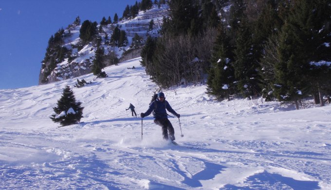 Beste Verhältnisse. Ab dem Vild auf guter Schneehöhe über Lanaberg und Berghaus Gonzen zum Gipfel. Die Hänge sind arg zerfahren - aber das Wetter stimmt!