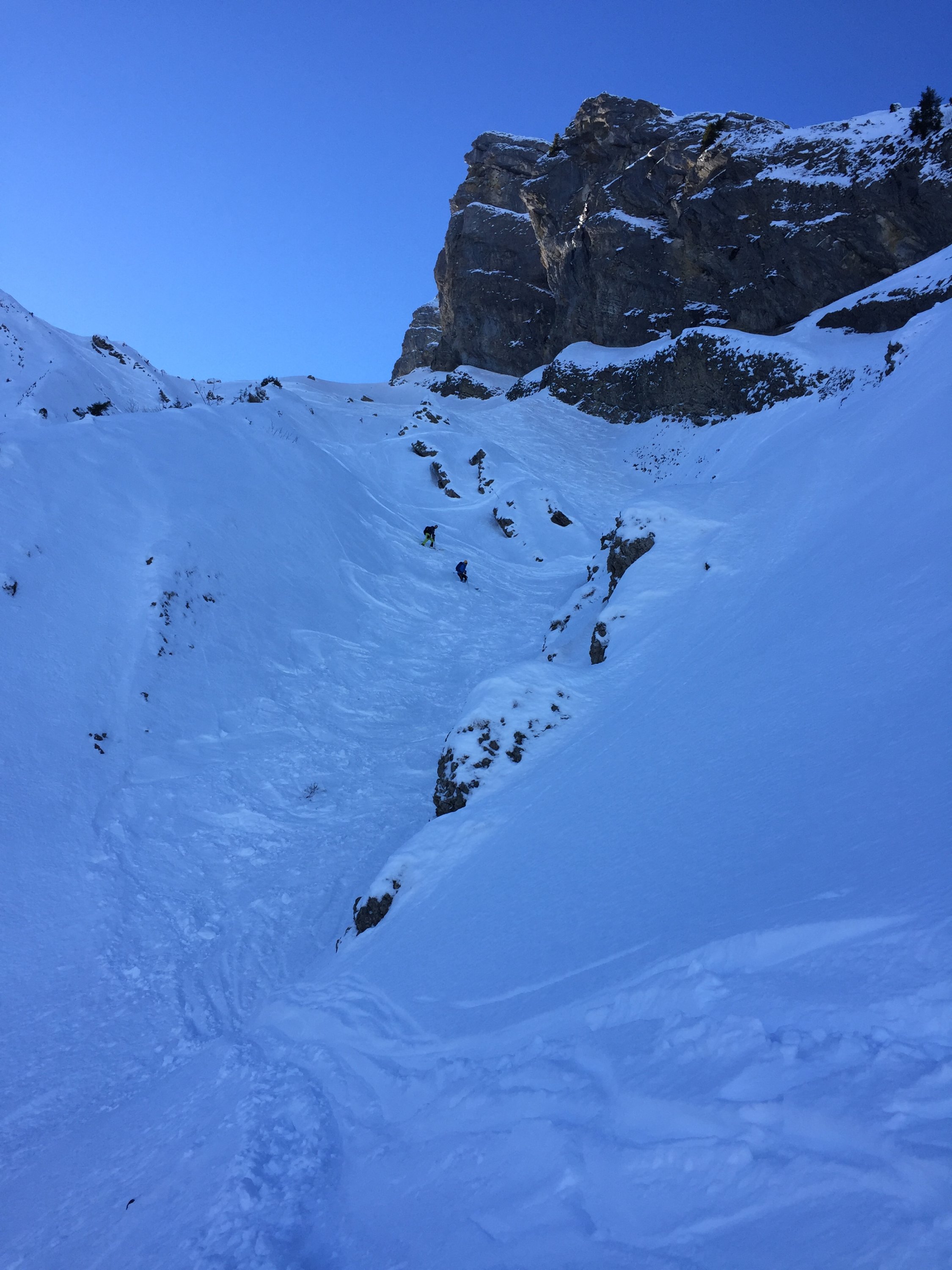 Die Tour sollte aber nicht unterschätzt werden (SS+). Hatte viele Leute unterwegs, leider auch viele welche weder Skitechnisch noch Alpintechnisch der Tour gewachsen sind. Da muss man sich schon wunder, dass in den Bergen nicht mehr geschiet. Ist dann zwar am Nachmittag noch ein Heli eingeflogen als wir zurück am Parklatz waren.