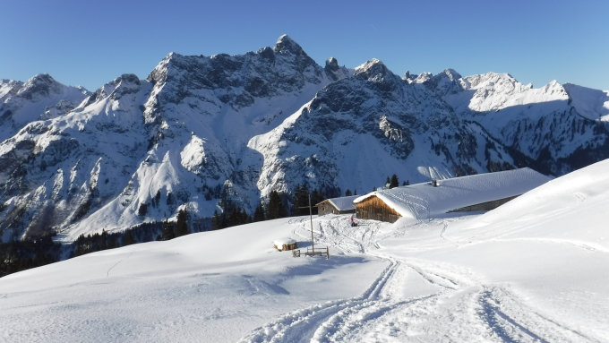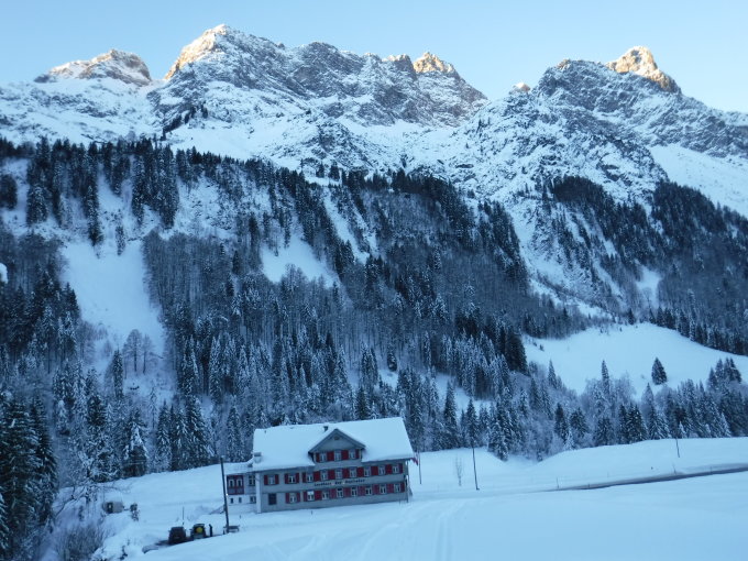 Vor mir waren mindestes 12 Skitourengänger auf dem Gipfel, die auf der Nordseite abfuhren. Im Abstieg begegneten mir noch 2 Skitürler-Duos mit Hund. An der Vorderen Üntschenalpe war eine große Gruppe (über ein Dutzend) zum Aufstieg aufgebrochen (evtl. auch Güntlespitze).