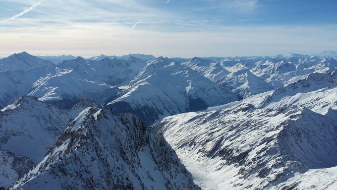 Tagestour von den Skiferien in Flims, 11 Uhr Gipfel, 13.30 Uhr in Bristen dann mit Ski und zu Fuss nach Amsteg auf's Postauto. Öv mit coolem Panorama zurück nach Disentis.
