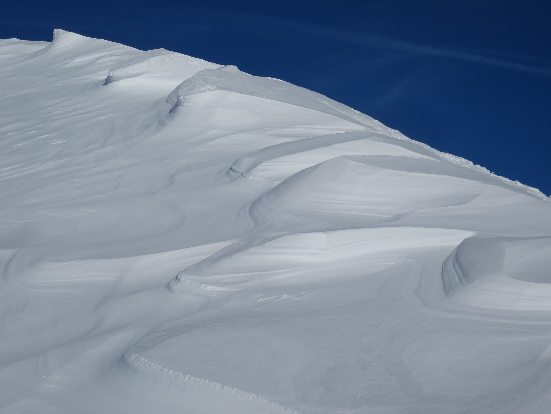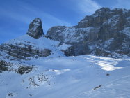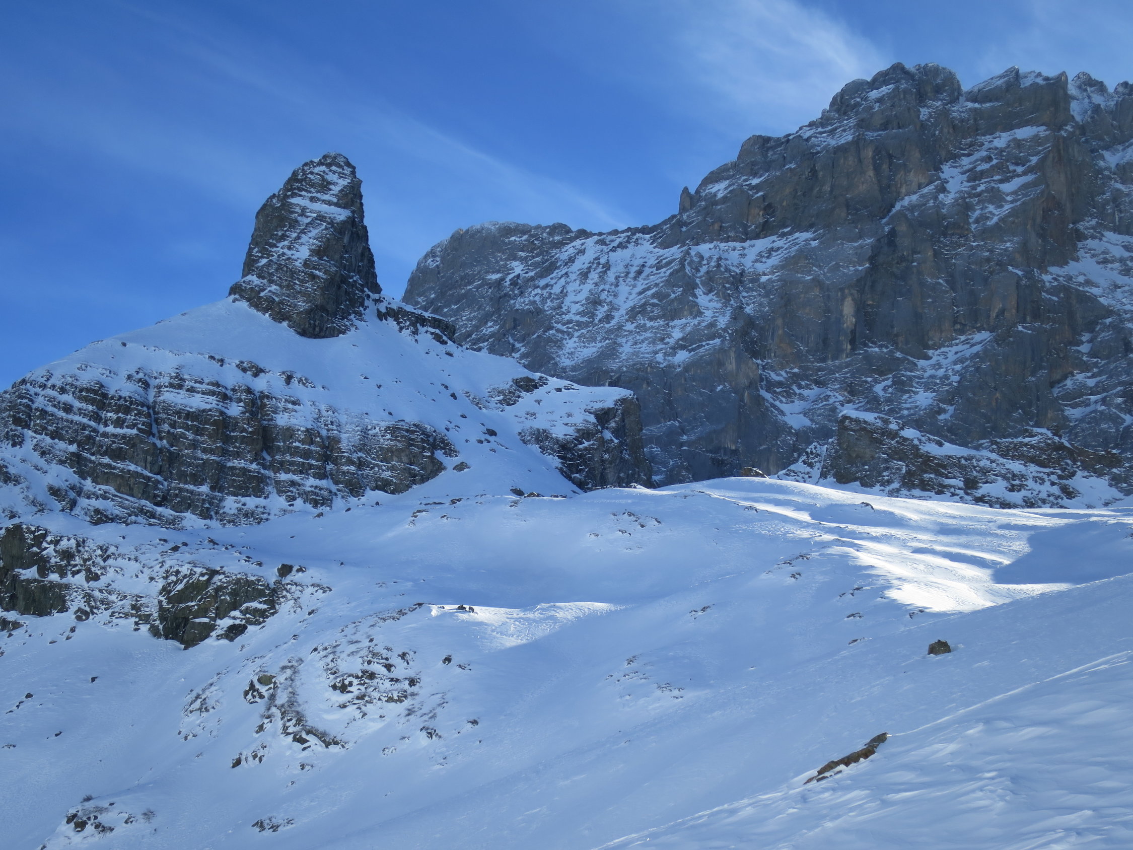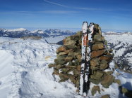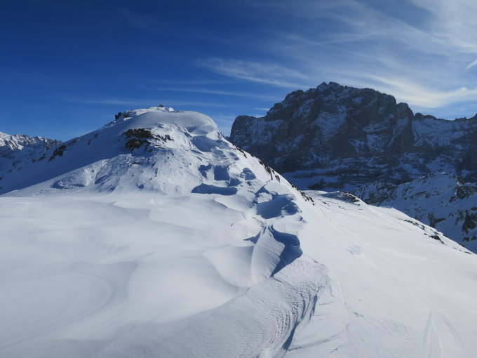 Zurzeit ist die Tour eher etwas für aufstiegsorientierte Tourler. Die Abfahrt trotz einiger schönen Pulverschneepassagen eher mühsam. (Viel tragender und nicht tragender Winddeckel)