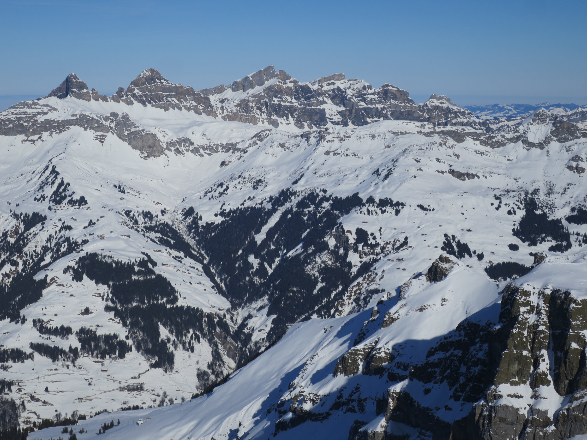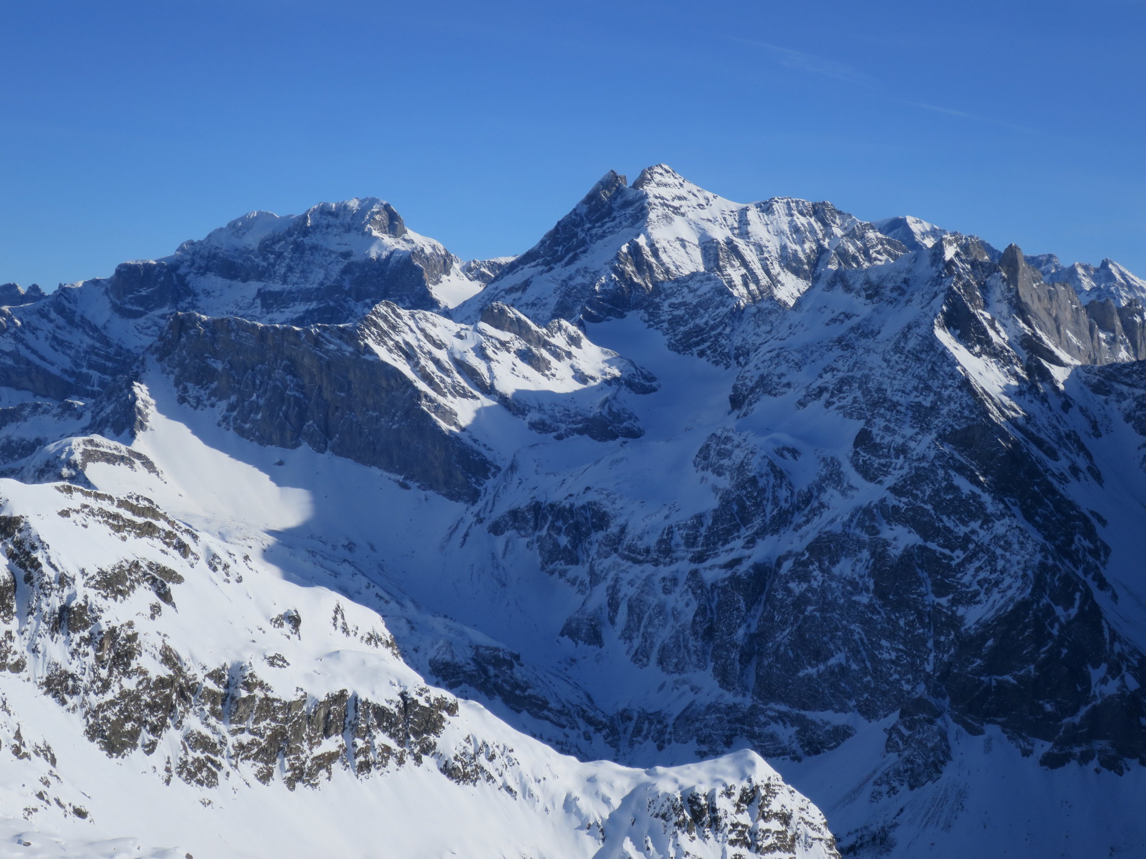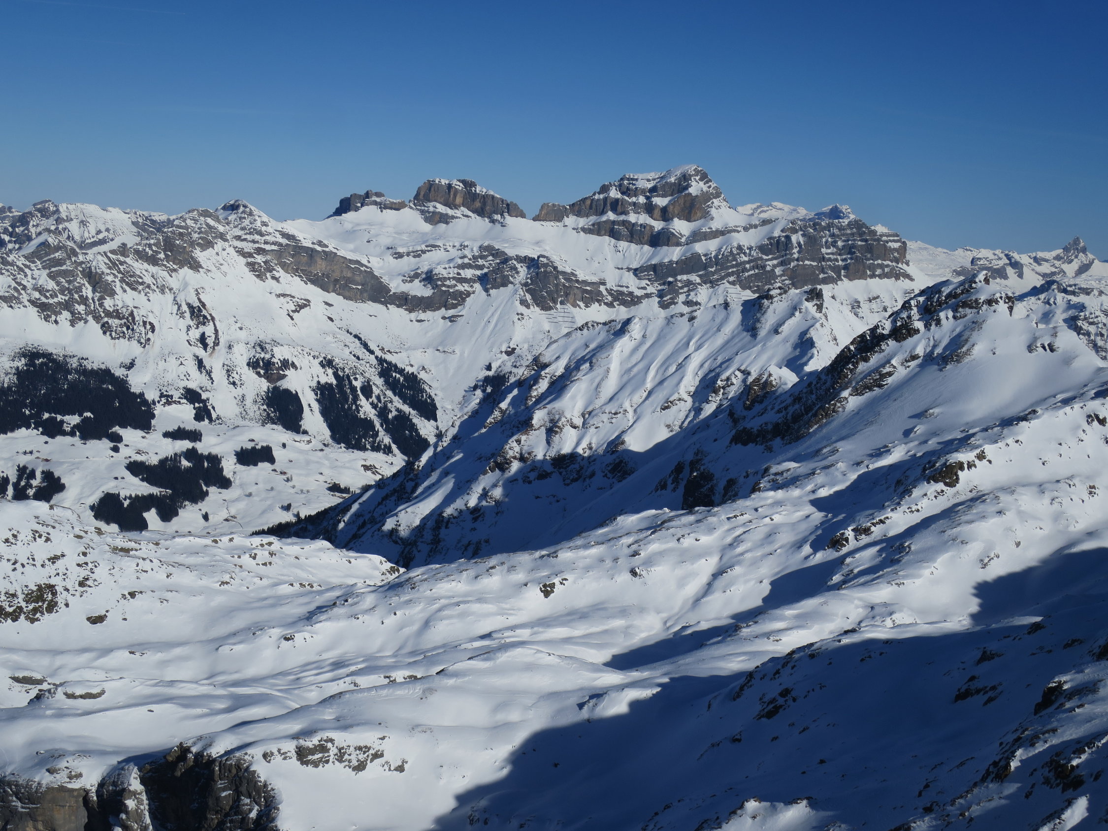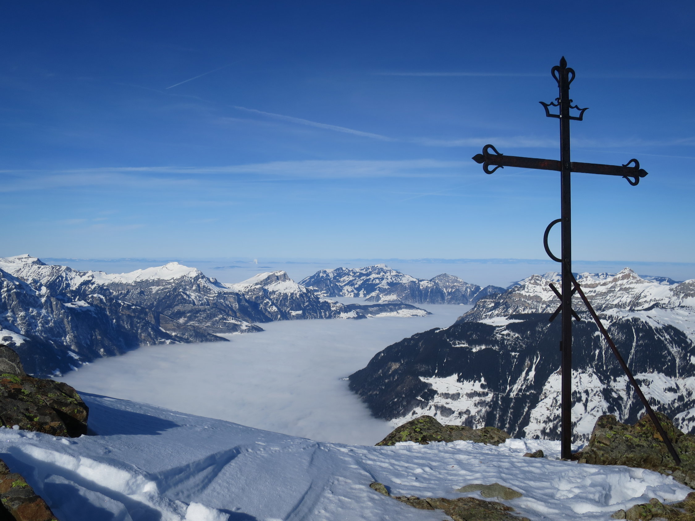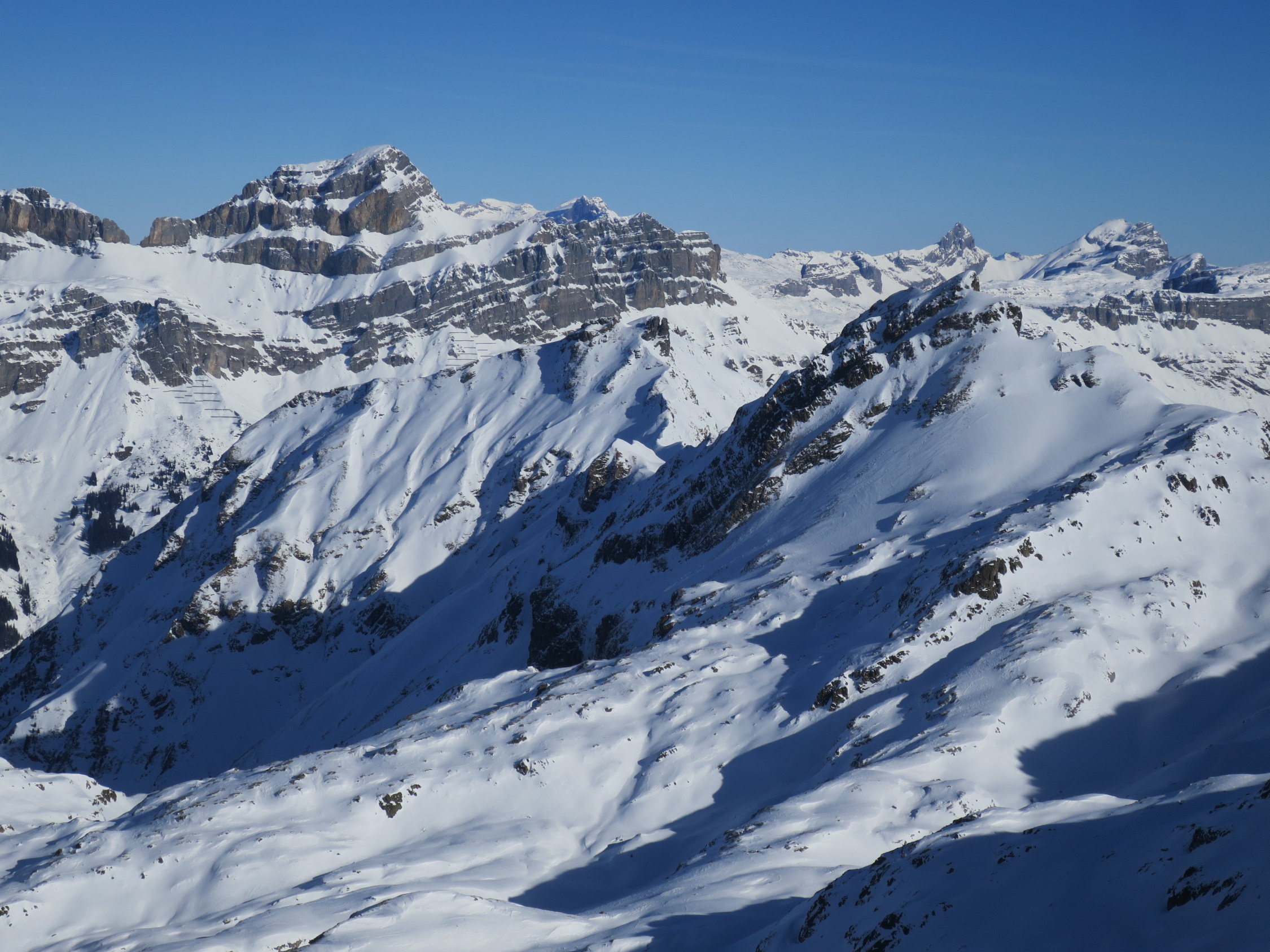 Start der Tour um 07.30 beim Parkplatz Bad in Unterschächen. Die Brunnistrasse war mit dem Ratrak bearbeitet worden zu laufen wie auf einem Teppich. Ab der Brunnialp, durch den Chärschelen Wald nach Flösch und durchs Griesstal war die Spur verblasen manchmal noch vage erkennbar. Der Wind hat wiedermal seine Schuldigkeit getan! Wunderschöne Fernsicht vom Gipfel des Hoch Fulen. In der Abfahrt, bis unter die Stichplatten Pulverschnee, dann ein Snowmix aus Pulverschnee und tragendem Winddeckel der aber beim geringsten Kantendruck durchbrach. Bei Eggen unter die Widerflüe traversiert und auf der Sommerroute durch den Wald nach Brunni hinab. Im windgeschützten Wald noch Pulverschnee, im offenen Gelände Winddeckel. Durchs Brunnital nach Unterschächen zurück.