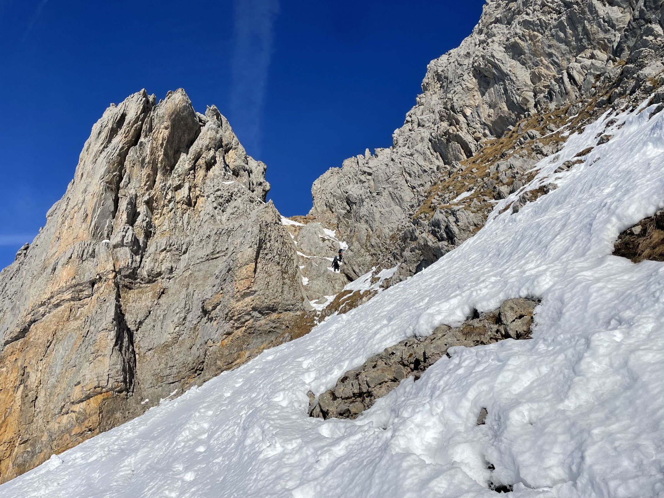 Das Drahtseil ist bis auf eine Ausnahme (~4m)3frei von Schnee.