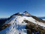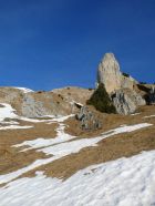 Ich stieg heute, entgegen der üblichen Route, links der markanten Felstürme in der Südflanke hoch und erreichte den Grat zwischen Pkt.1963 und dem Gipfel. Eine kurze Kraxelei war dabei im Bereich T5.