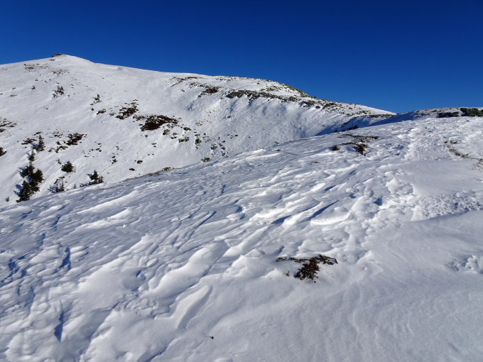 Im Aufstieg bis zur Chrinde nur im Pullover, bis zum Gipfel wurde die Bise stärker da gab es eine kalte und kurze Gipfelpause.