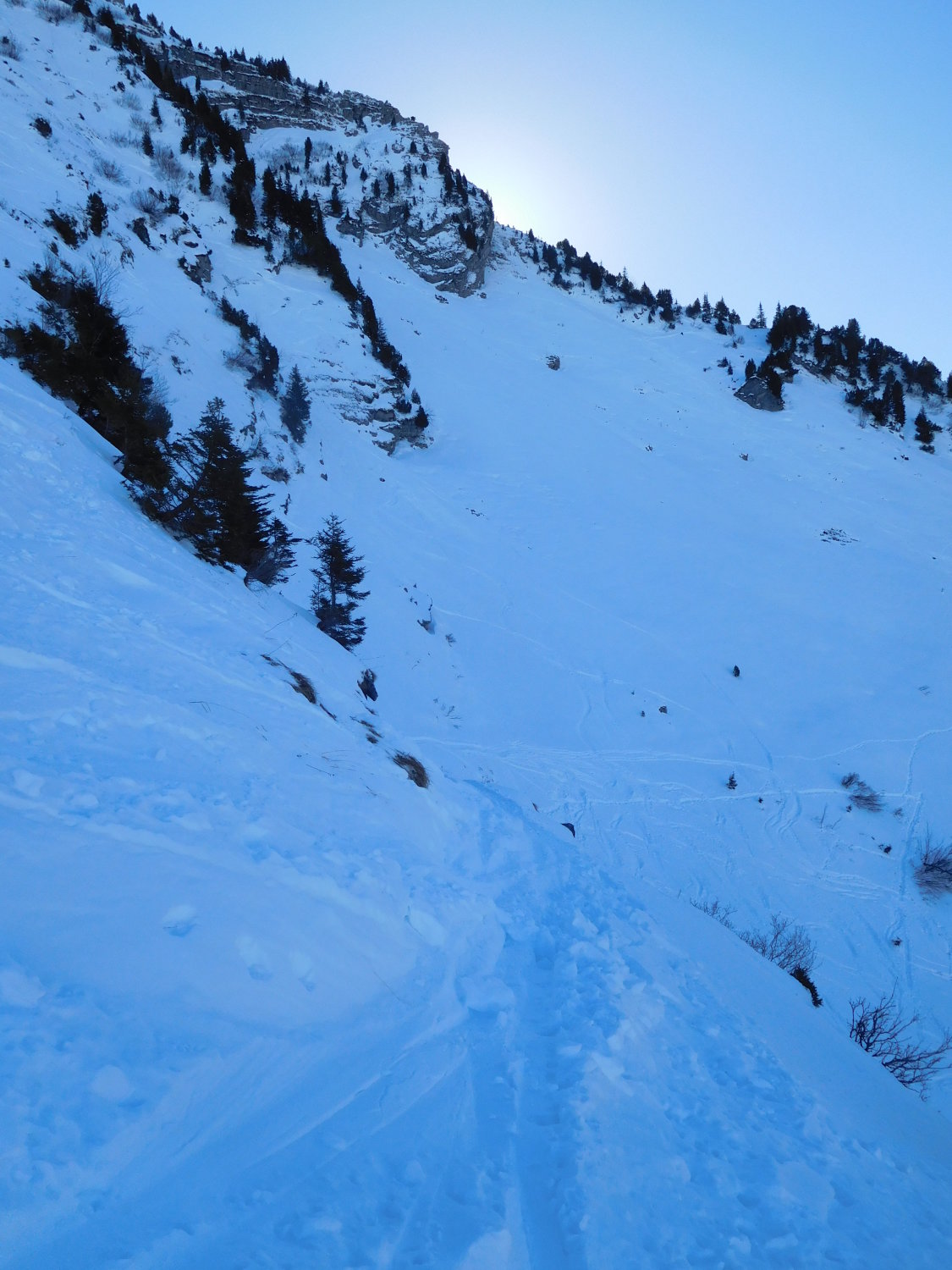 Aufstieg um 8:30h von oberhalb 1. Kehre (Parkmöglichkeit für einzelnen PKW) der Hüttenbergestraße auf guter Aufstiegsspur.
