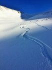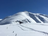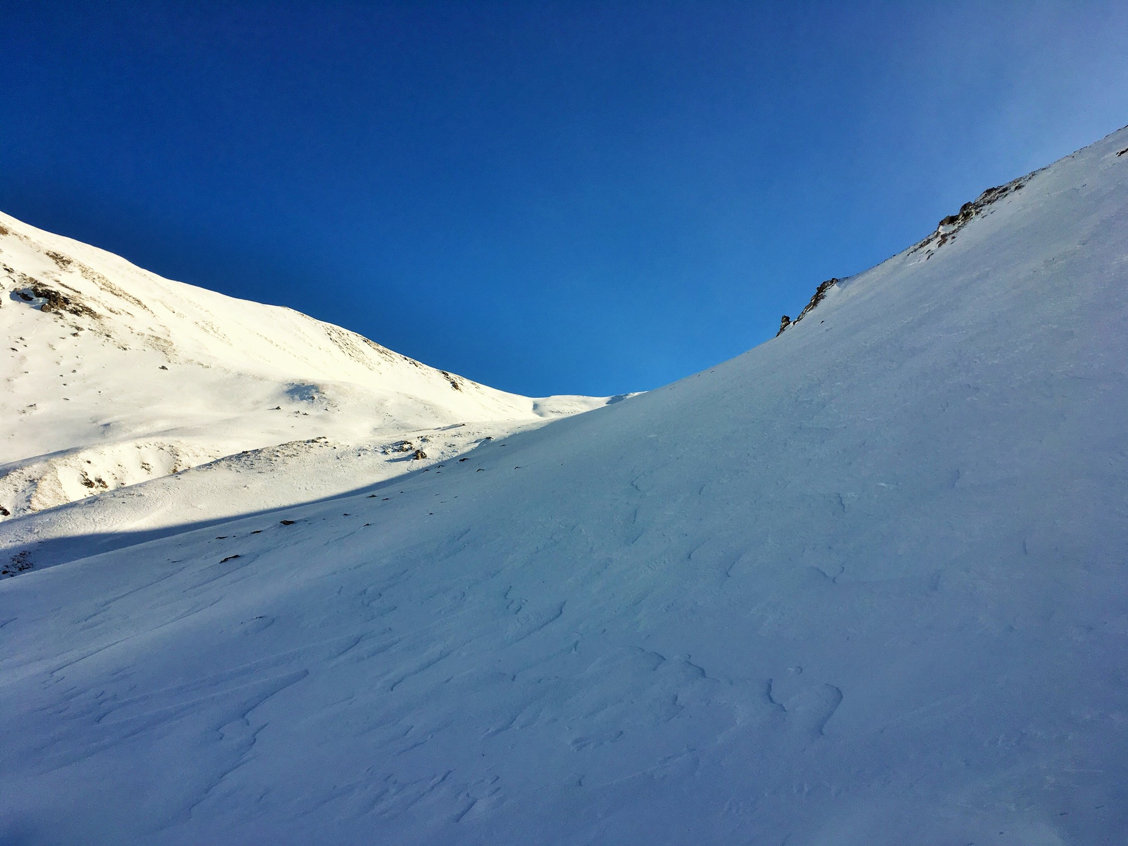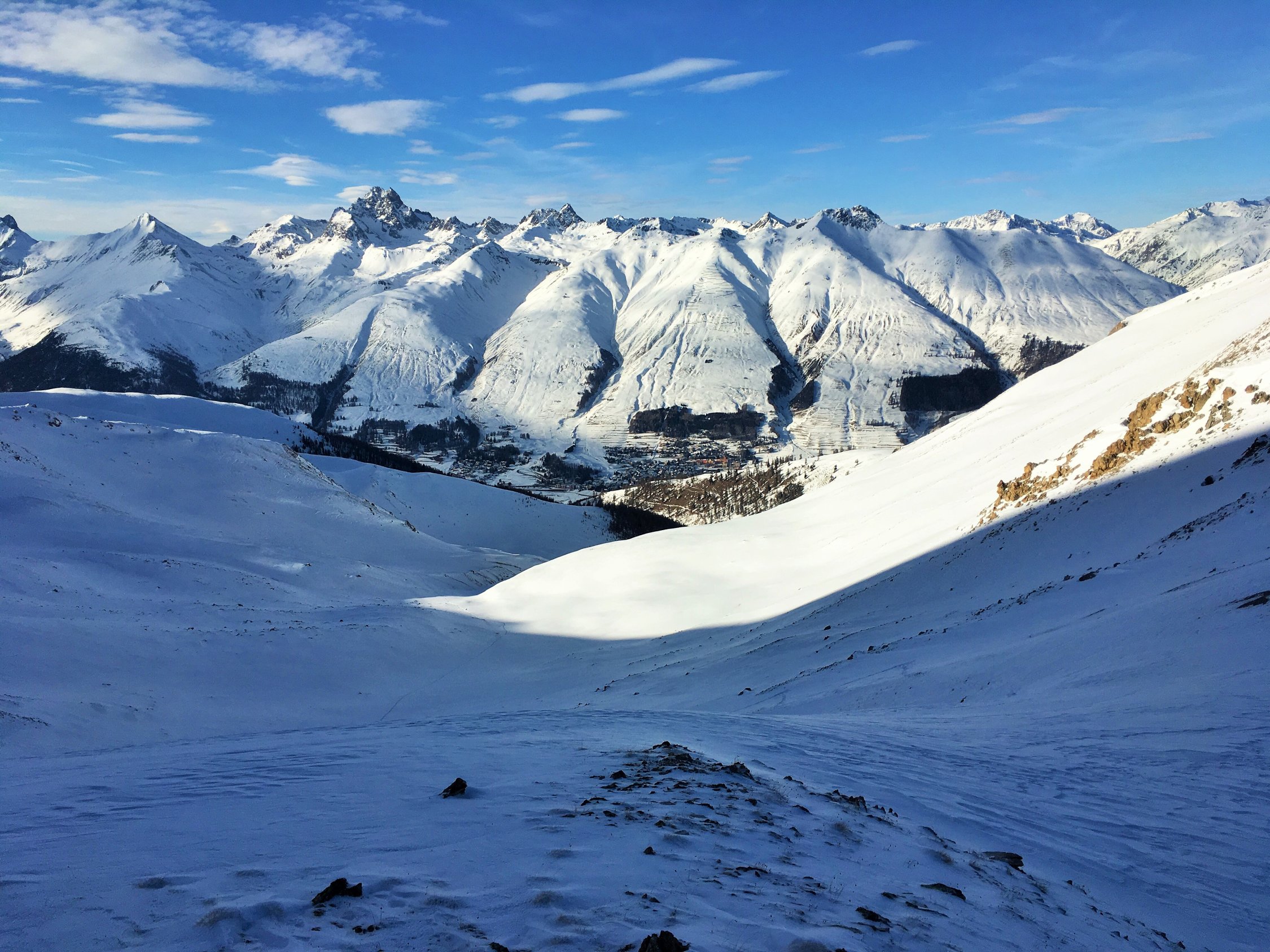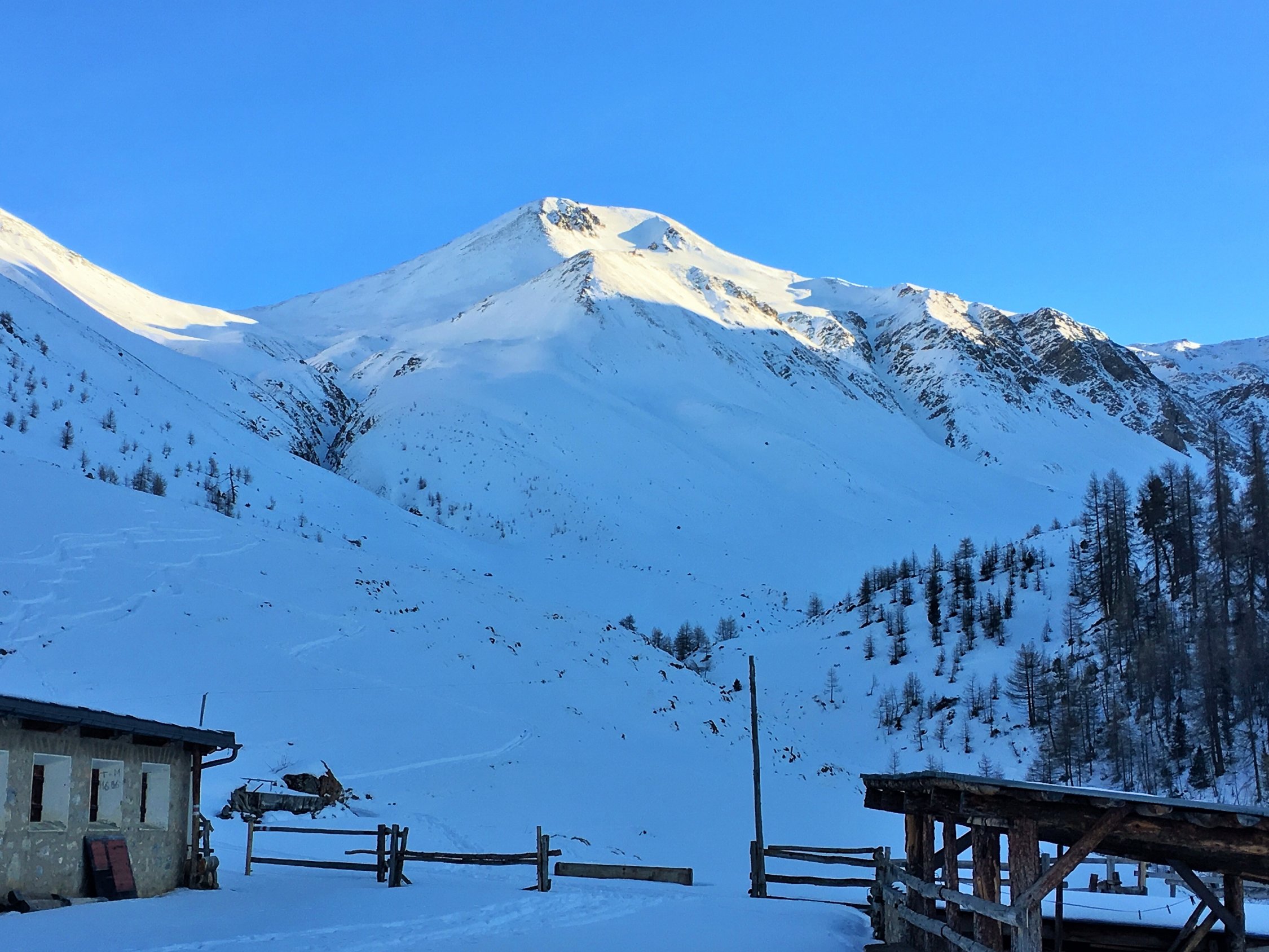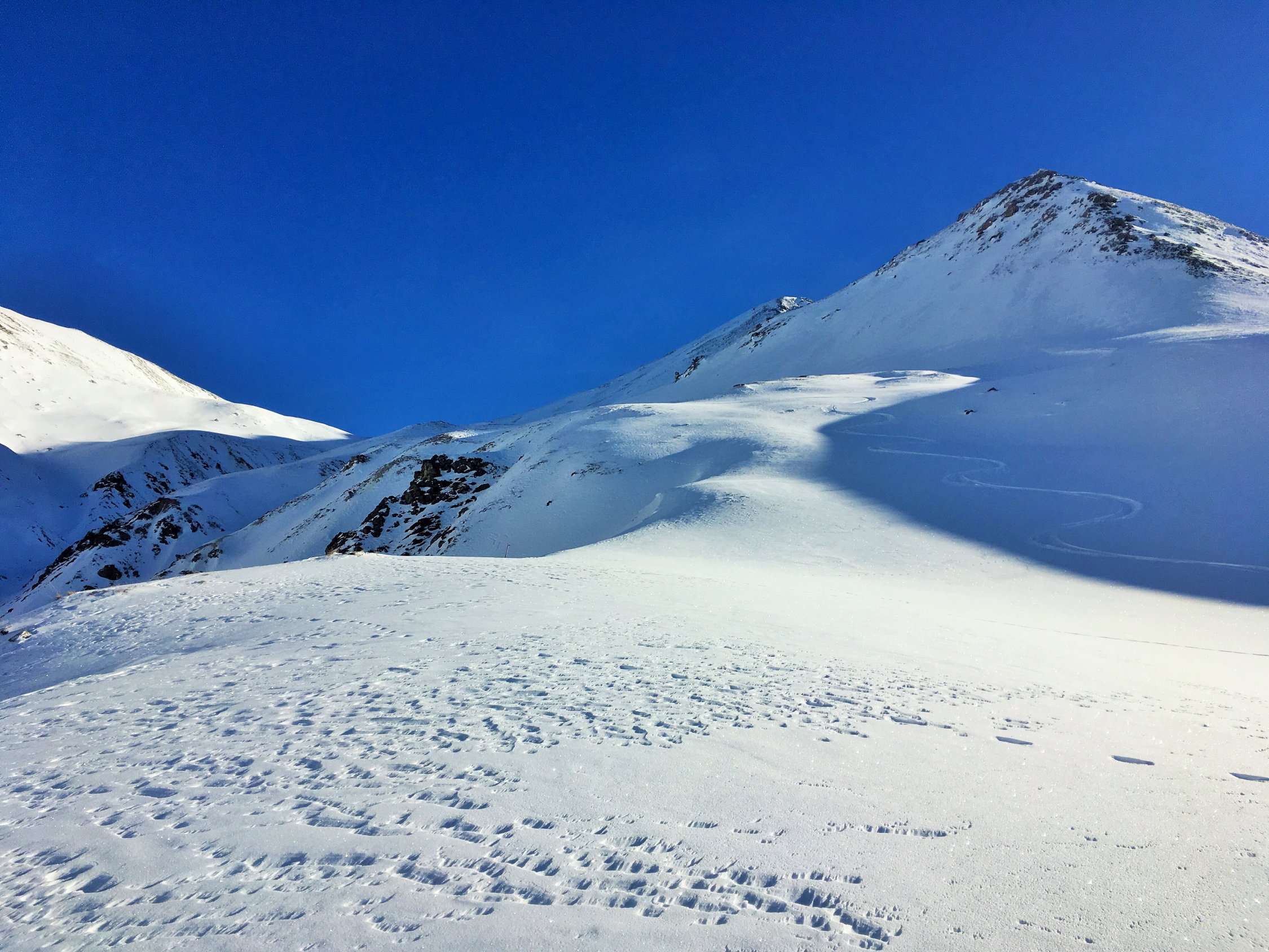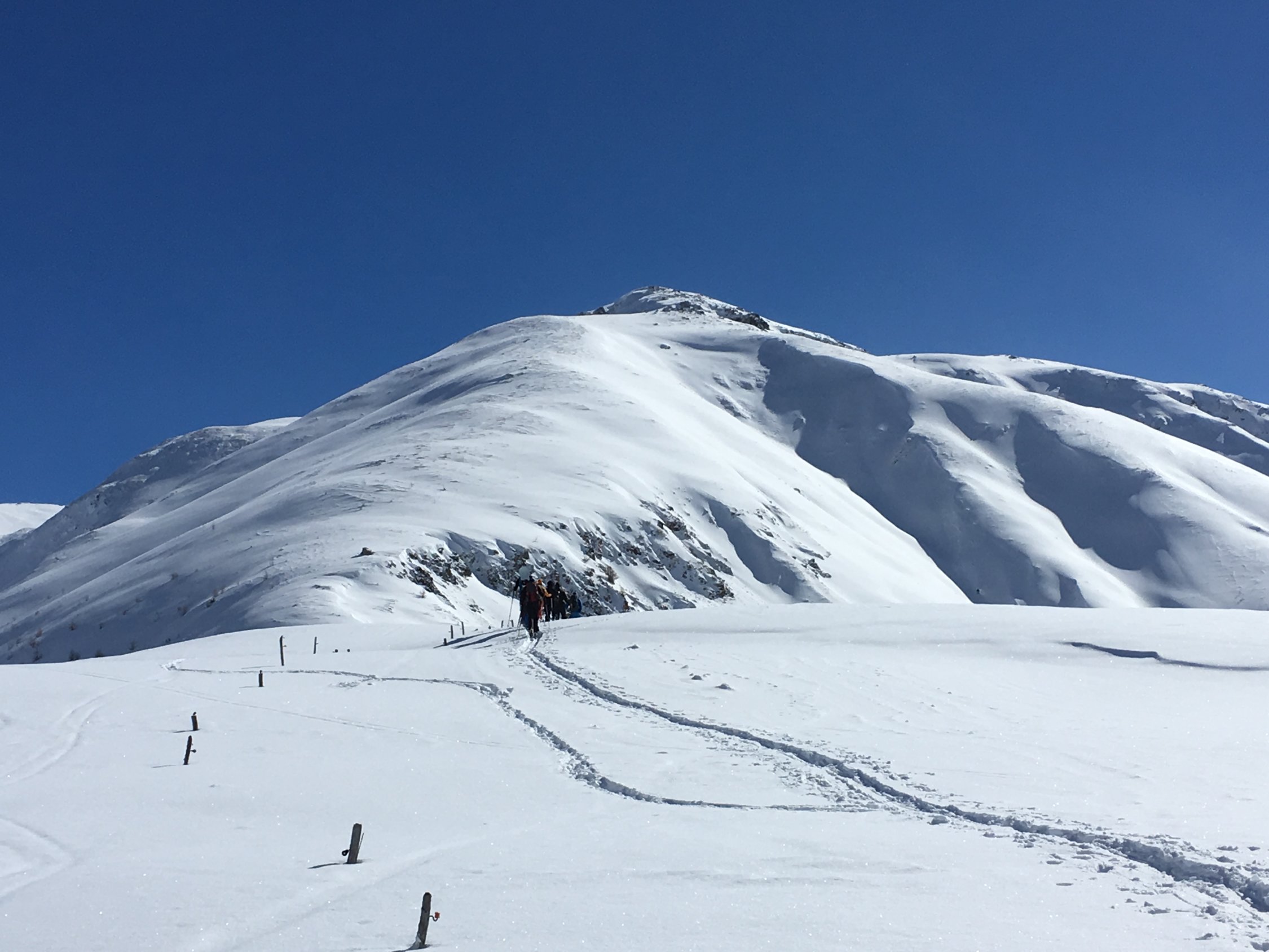 Schöne Verhältnisse, bis Alp Arpiglia 2129 m relativ wenig Pulverschnee, so dass nur der Alpweg für die Abfahrt in Frage kam. Nach Alp Arpiglia kurz etwas ruppig, nachher tolle Verhältnisse im Val Peja mit genügend Pulverschnee bis Gipfel. Ab Fuorcla Giaval 2706 m teilweise Hartschnee und windgepresster Pulver, Harscheisen obligatorisch. Die Abfahrt über Grat und durch das Val Peja ganz toll, vor allem im Val Paja perfekte Verhältnisse. Ich war diesen Winter der erste auf diesem Gipfel. Dauer fast 5 Stunden, Schwierigkeit ZS-.