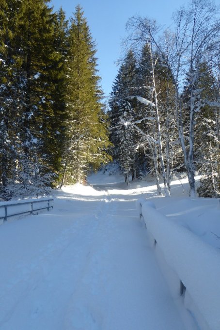 Ab Abzweig nach Jagdhütten sehr gute Spur. Der Direktanstieg zur Kälberhütte wird von Jahr zu Jahr aber etwas verwachsener und sperriger. Oben am steilen Gipfelanstieg sind am Rücken sehr starke Verwehungen und zwingt einen sowohl im Aufstieg wie auch in der Abfahrt mehr in die N-Flanke. Aber machbar mit natürlich etwas wechselnden Bedingungen. Am besten über Schnitzleralp Forstweg abfahren, heute sehr schnell durch Motorschlittenspur.