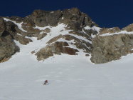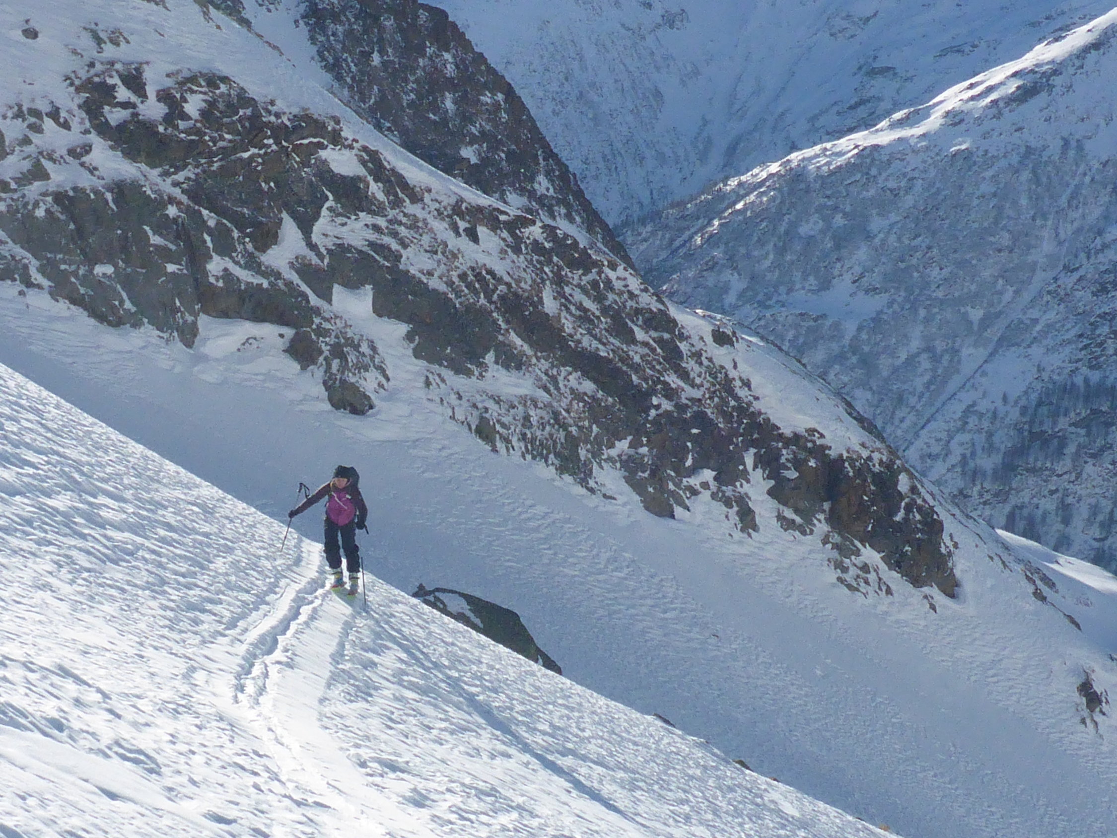 Verhältnismässig liegt wenig Schnee. Im Aufstieg kein Thema. Ab Skidepod perfekte Bedingungen zum Gipfel (Überschreitung zum Zwächten extrem wenig Schnee, Bedingungen nicht optimal). Doch bei der Abfahrt ist Vorsicht geboten, Steine und in den Couloir zum Teil Eis. Ab Alp Rieter Schnee miserabel!!