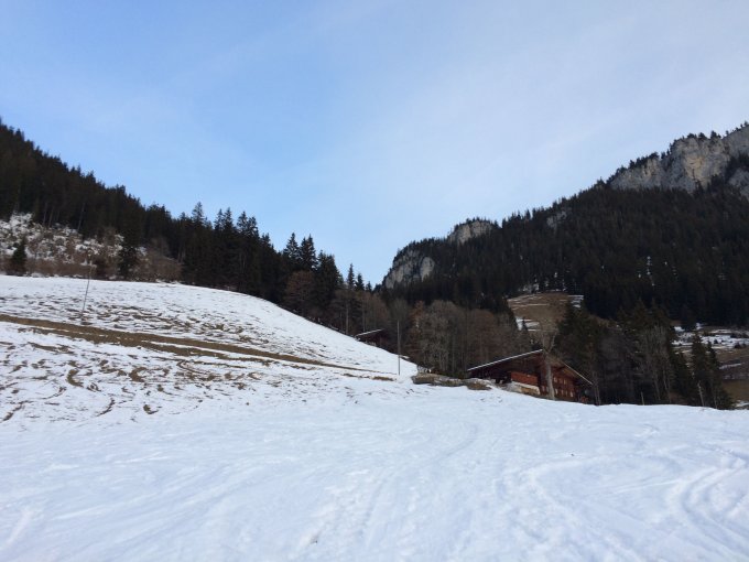 Abfahrt nach Därstetten: natürlich ziemlich vercharet aber immer noch total trockener, gesetzter Pulver und daher problemlos und weiterhin schön zu fahren - je weiter unten desto besser. Wenig aber ausreichend Schnee bis unten, die Steine und Baumstrünke sind von den "Vorfahrern" freigelegt worden. Temperatur bei der Hütte "Alpstutz" heute kurz nach dem Mittag ca. 2-3 Grad plus. Der Schnee war aber noch so unterkühlt, dass er heute wohl noch nicht feucht geworden ist.