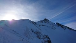 In der Abfahrt zum Teil verfahrenes Gelände mit Winddeckel, aber weiter unten (im flächeren) auch einige gut zu fahrende Triebschneemulden gefunden. Die Kuppen waren gut abgeblasen, aber es gab keinen Steinkontakt.