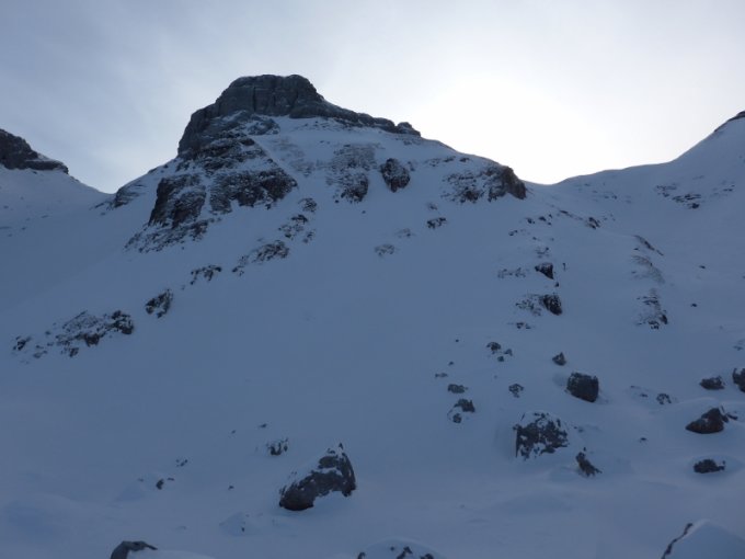 Heute nur noch wenig Wind. Auf der Aufstiegsroute mehrheitlich harte Unterlage. Harscheisen stellenweise zu empfehlen. Rinne im Gipfelaufbau ging heute problemlos ohne Steigeisen und Pickel. In der nördlichen Querung um den Gipfelaufbau zur Blüembergmulde gute Verhältnisse. Abfahrt vom Blüemberg nach Muotathal im oberen Bereich hart oder windgepresster, windbearbeiteter Schnee, gut zu fahren, nie eingebrochen. Im unteren Bereich zum Teil noch Pulverschnee, das meiste zerfahren, aber auch gut zu fahren.