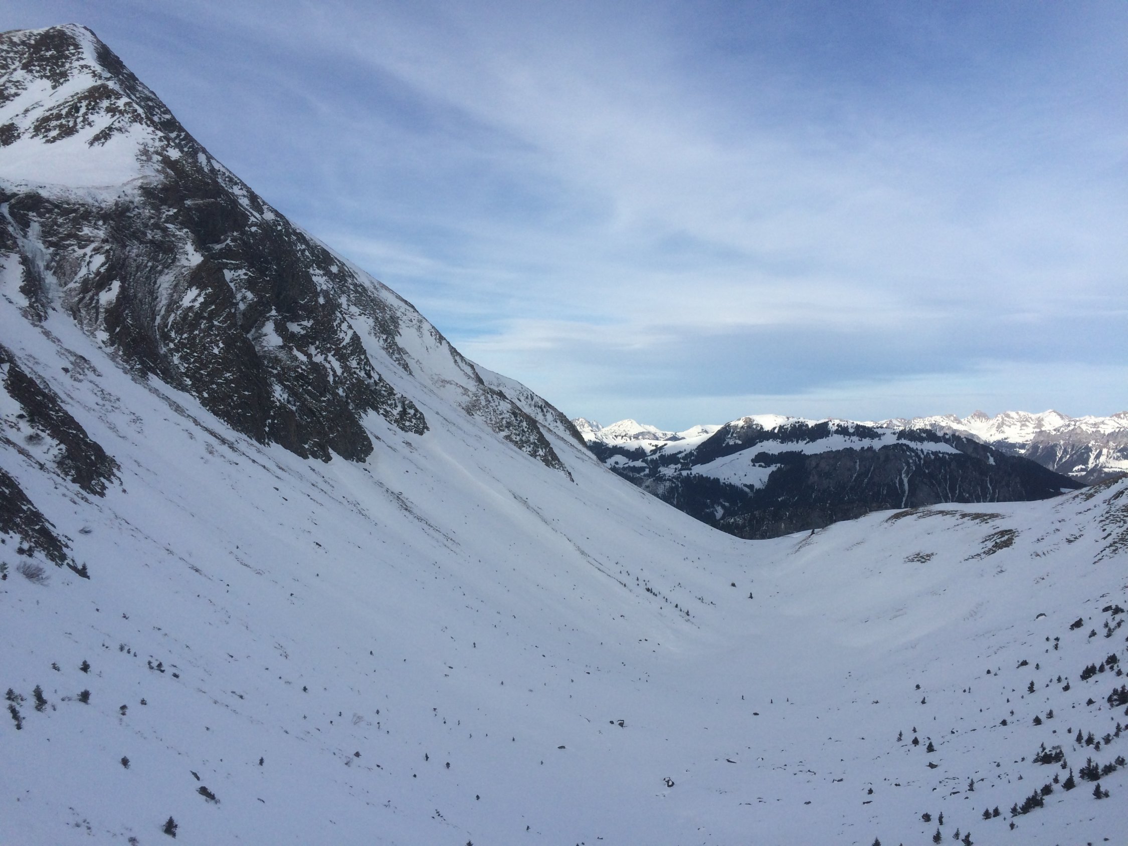 Gute Aufstiegsspur bis in den letzen Teil des Gipfels, anschließend mussten wir die Harscheisen montieren um auf den harten Feldern nicht auszurutschen. Die Abfahrt war über die Westflanke sehr schön und in den Mulden haben wir noch guten Pulver gefunden.