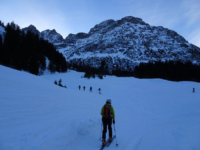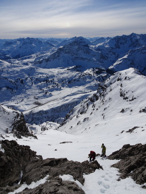 Beste Verhältnisse für den Widderstein. Noch ausreichend Schnee von Baad bis zum Gipfel. Rinne sehr gut ohne Lawinenbollen.