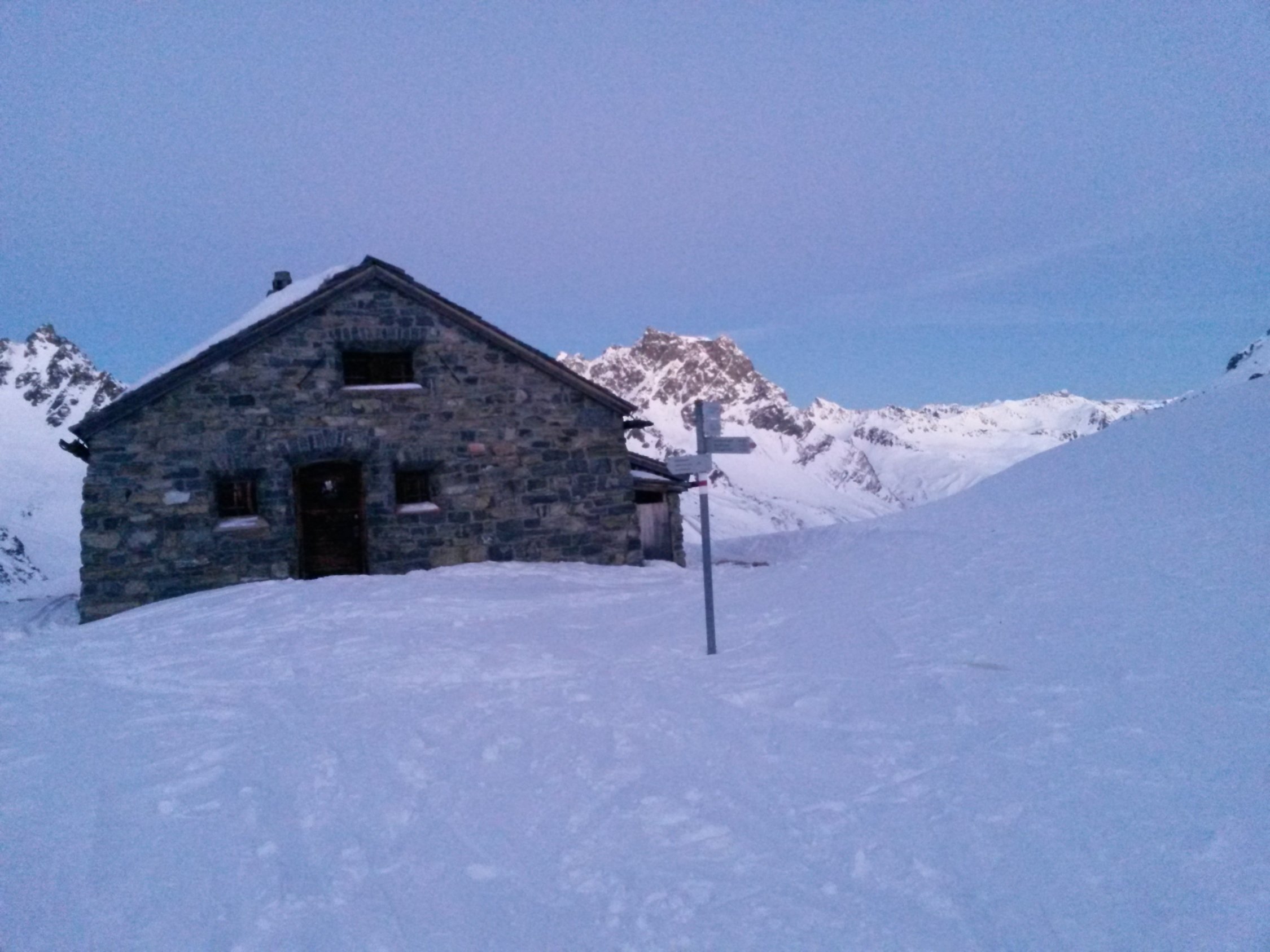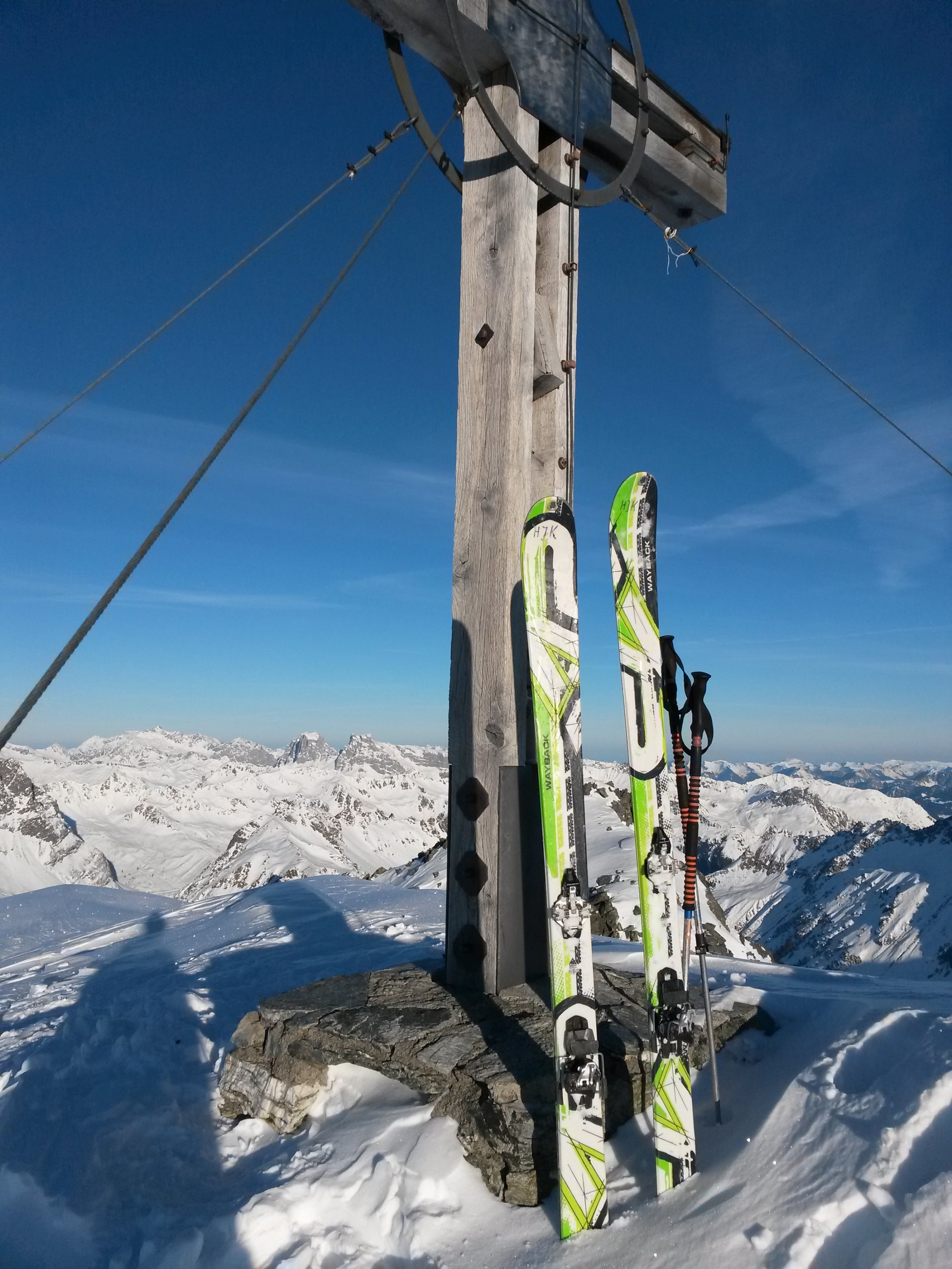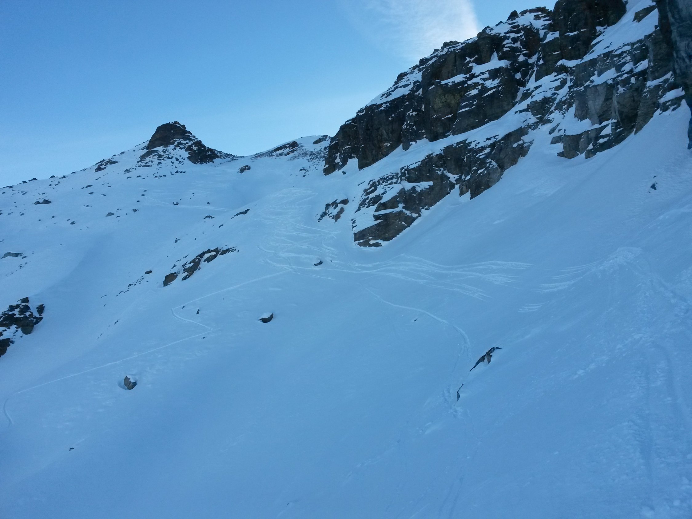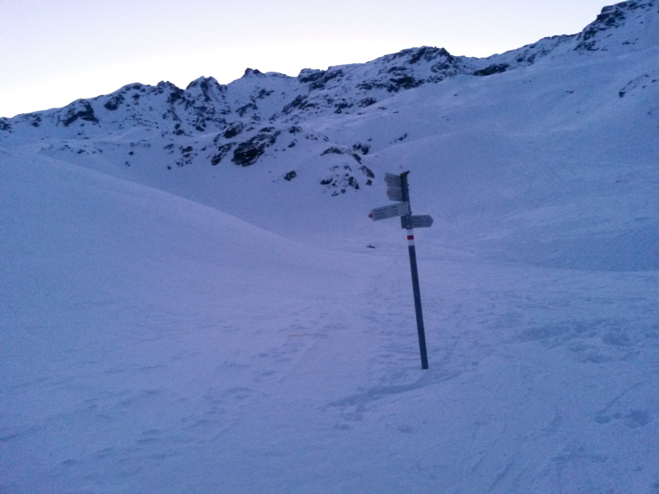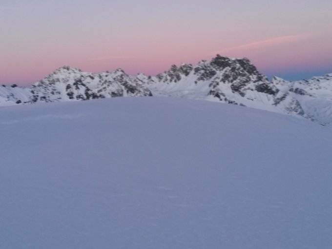 Wenig, aber ausreichend Schnee. gute Aufstiegspur, alle Varianten von Schnee bei der Abfahrt,