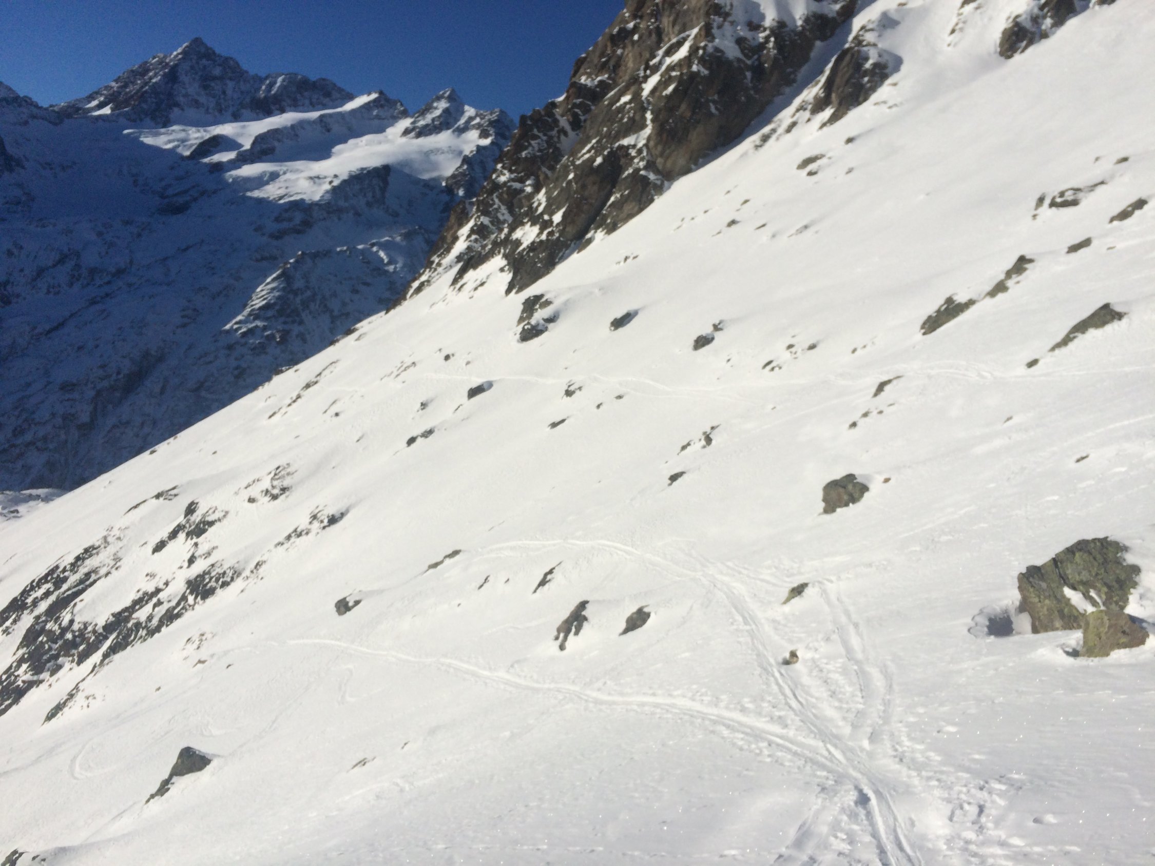 Couli runter recht voll mit Triebschnee, restliche Abfahrt deutlich besser als erwartet.