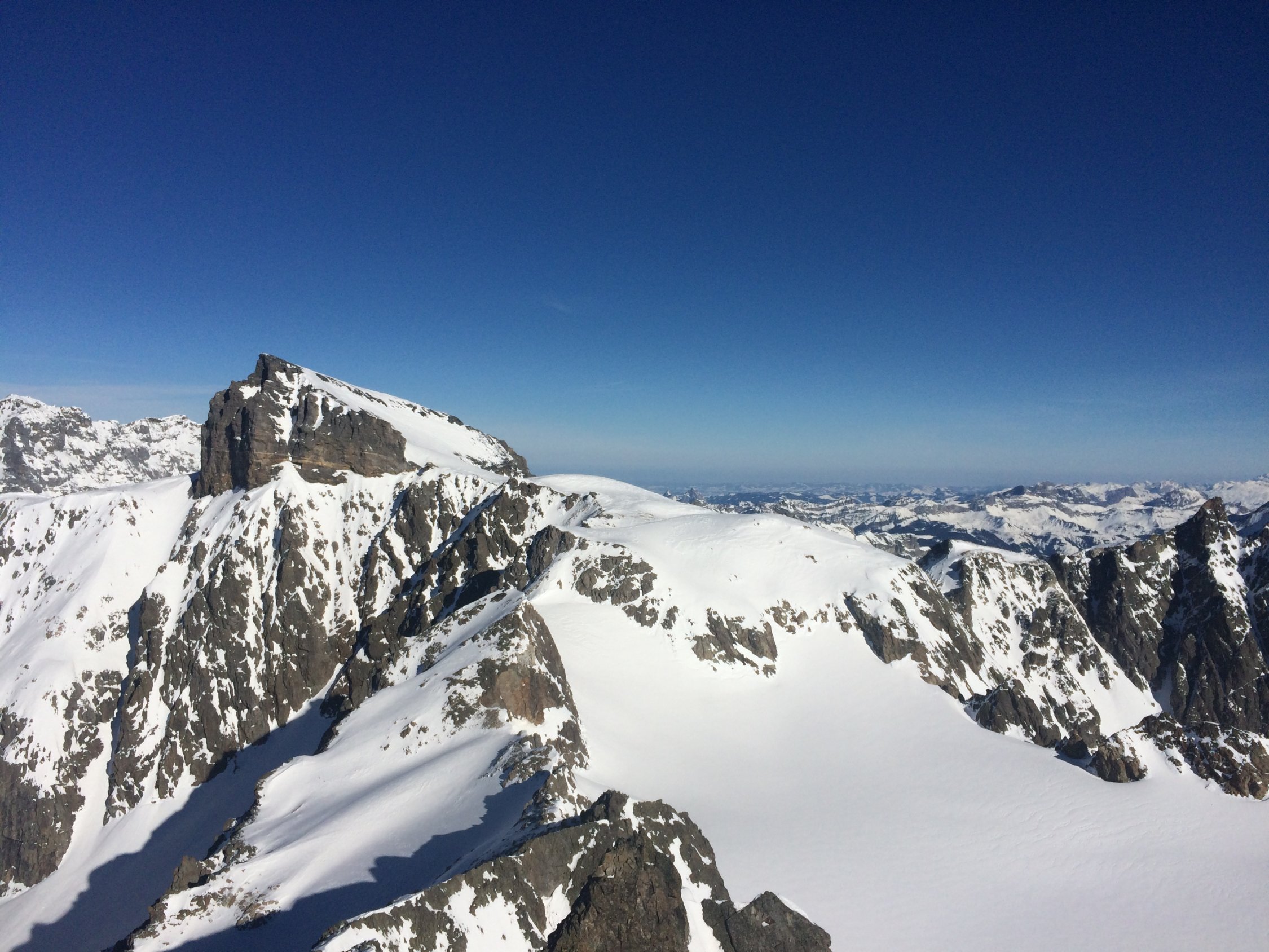 Aufstieg durch den Wald wie immer, etwas Rutschakrobatik über glasige Schneeschuhlöcher, insgesamt aber recht gut. Ausserhalb Wald extrem abgeblasen und wenig Schnee. Bei Steilstufe unterhalb Seewenfirn Harscheisen kein Luxus. Gipfelaufstieg ok. Überschreitung ebenfalls. Übergang momentan komplett wächtenlos, kann einfach zu Fuss abgestiegen werden. Zwächten Gipfelhang ziemlich abgeblasen.