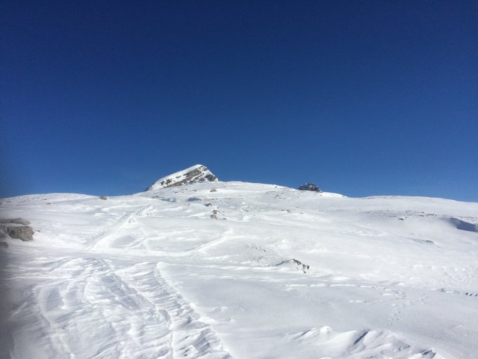 Für den Aufstieg waren es super Verhältnisse. Der Gipfel war bei gutem Trittschnee schnell erreicht. Steigeisen waren nicht notwendig aber hilfreich. Bei der Abfahrt gab es viele Steinkontakte. Der Schnee war aber gar nicht so schlecht, wie erst gedacht...
